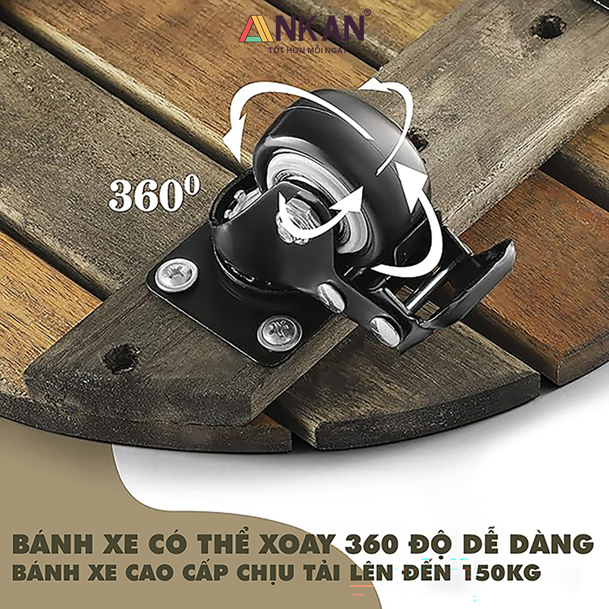 - Bánh xe cao cấp nhất, tải trọng 150Kg, di chuyển mượt mà 360 độ.