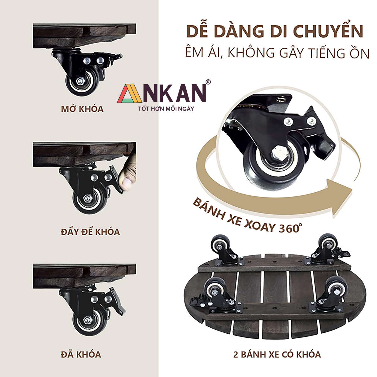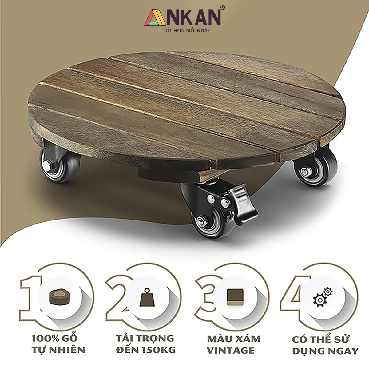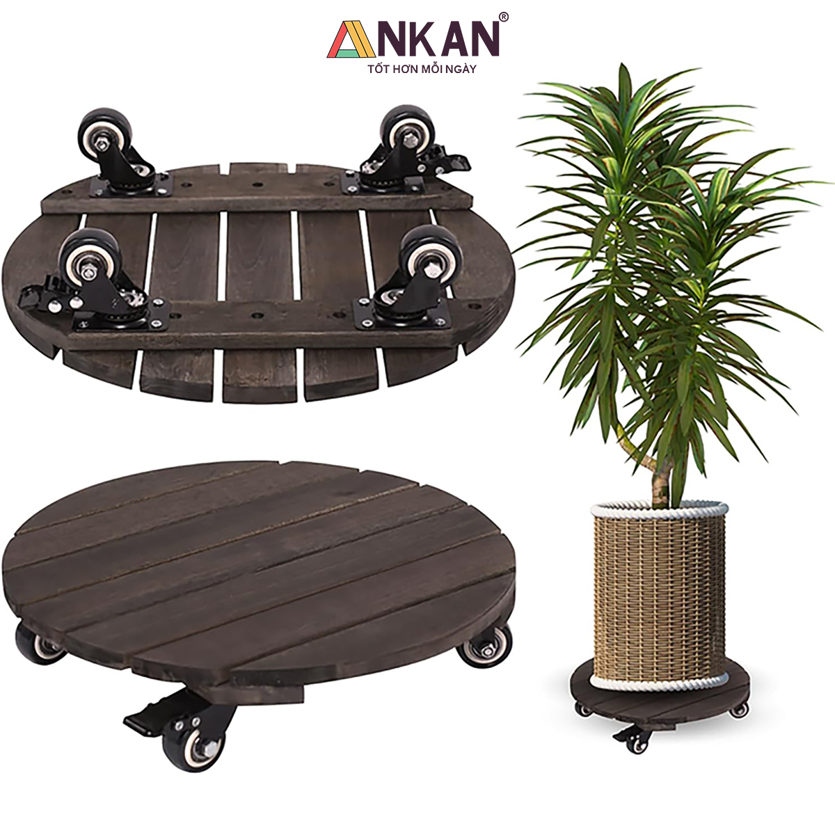 Thông số kỹ thuật Đế Lót Chậu Cây Có Bánh Xe Cao Cấp ANKAN, Tròn Màu Xám Đen R35cm, Tải trọng 150 Kg, Di Chuyển Chậu Cây Êm Ái, Không Ồn