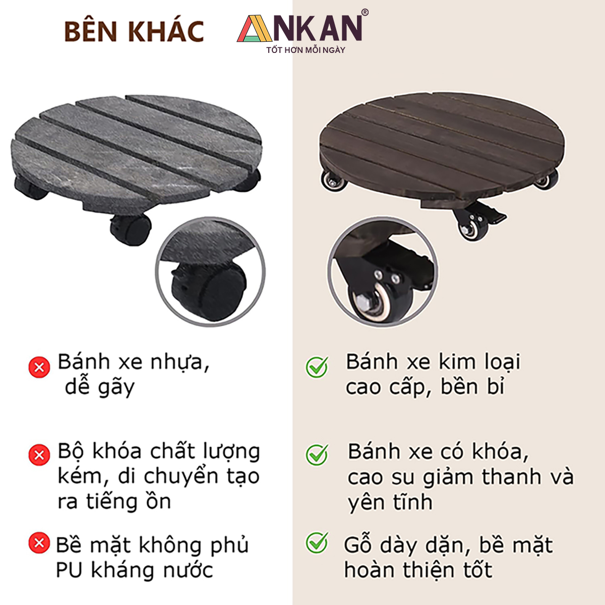 Hiện tại chỉ có ANKAN đang bán sản phẩm đế lót chậu cây có bánh xe cao cấp như hình ảnh bên dưới. ANKAN cam kết bán đúng sản phẩm như hình ảnh cung cấp.
