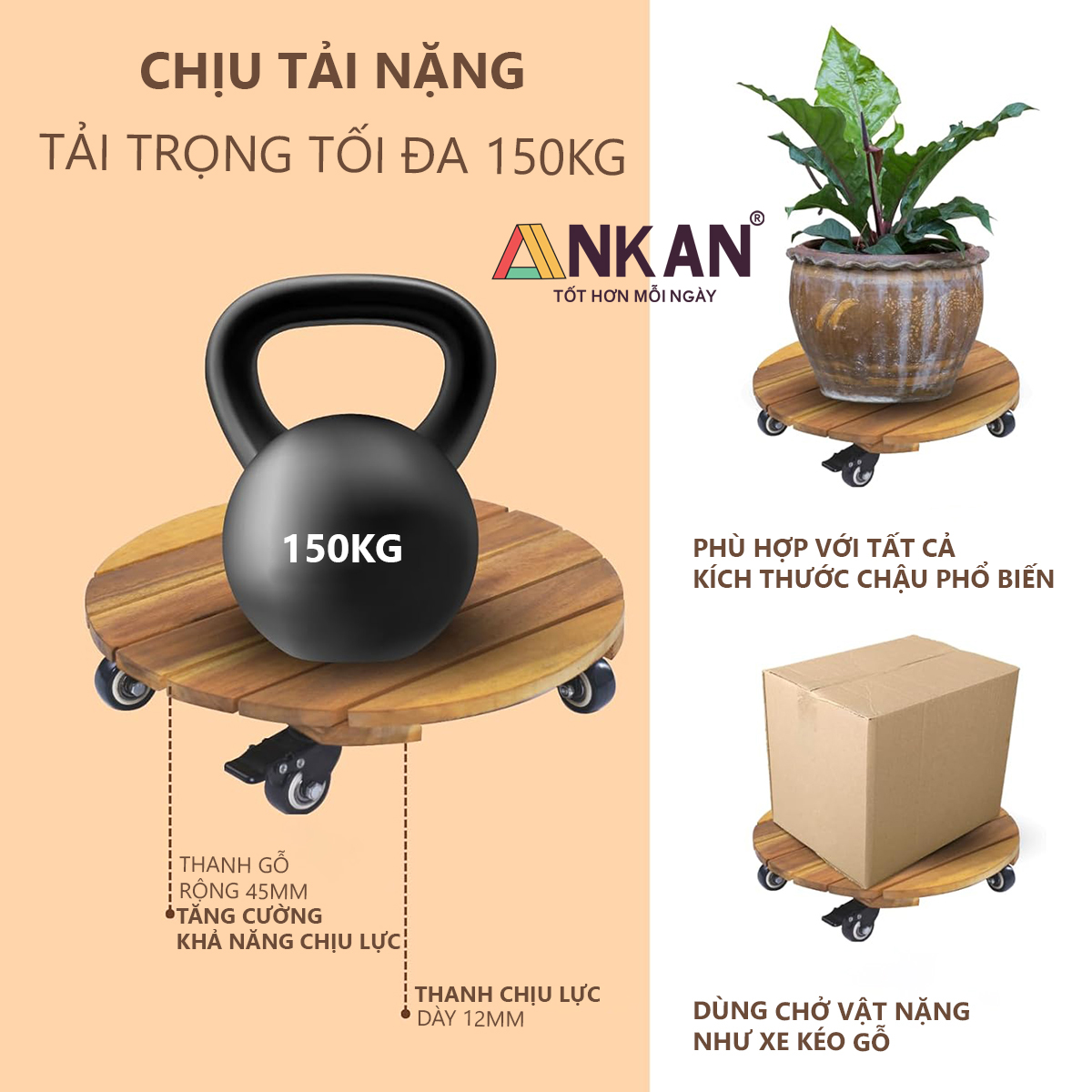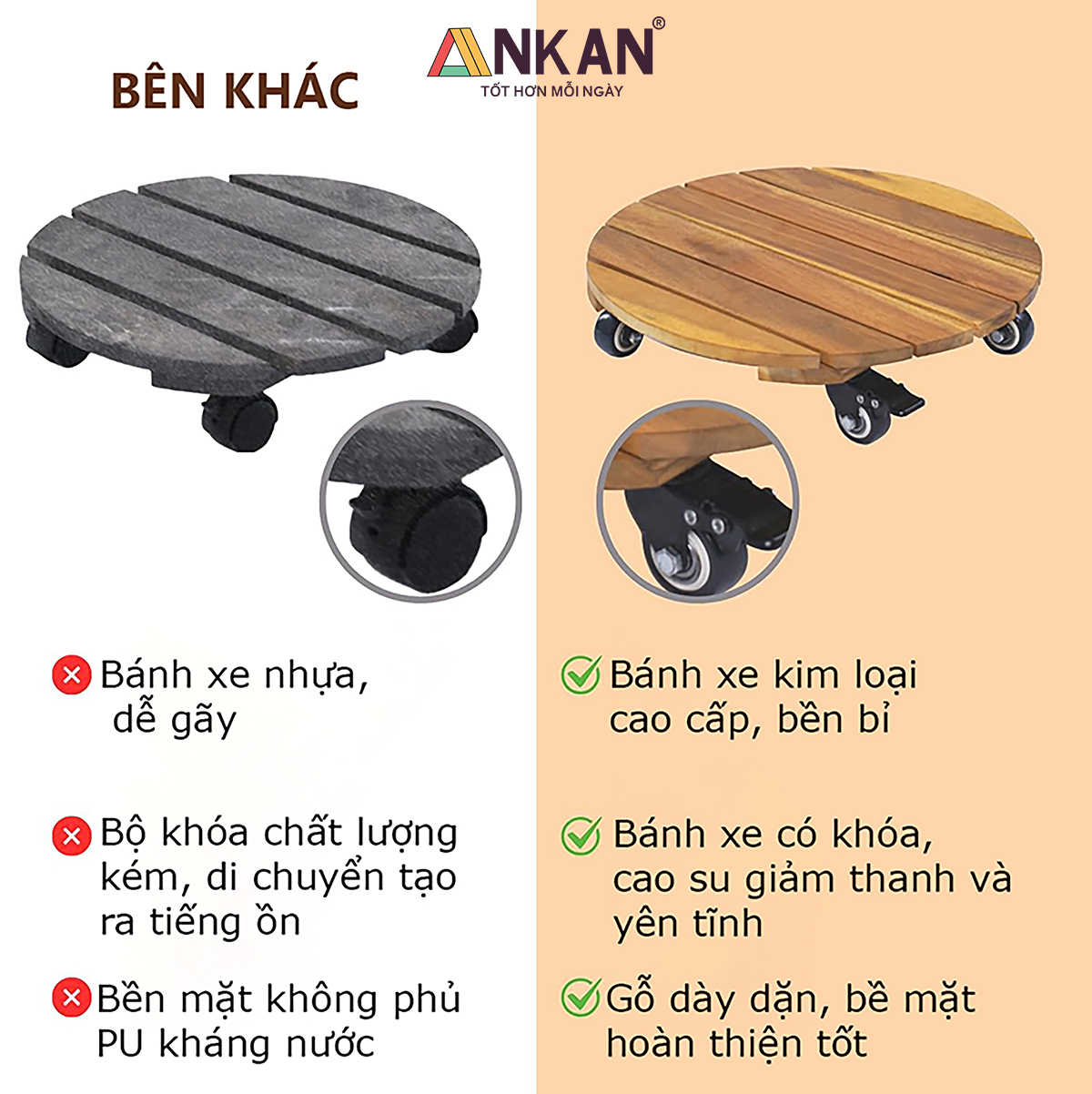 Hiện tại chỉ có ANKAN đang bán sản phẩm đế lót chậu cây có bánh xe cao cấp như hình ảnh bên dưới. ANKAN cam kết bán đúng sản phẩm như hình ảnh cung cấp.