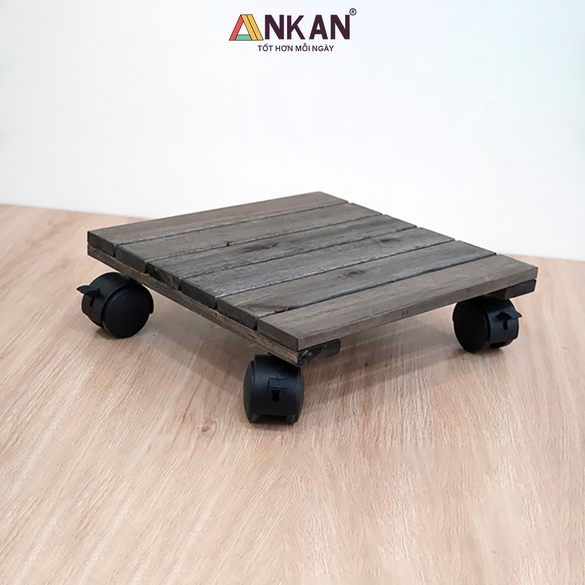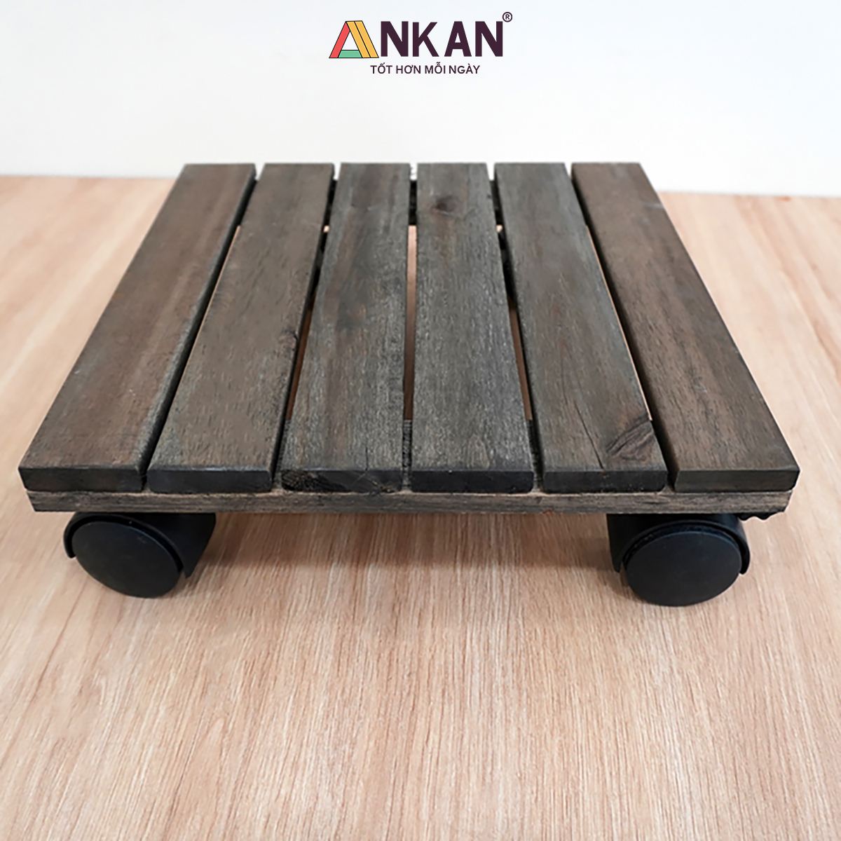 Thông số kỹ thuật Đế Lót Chậu Cây Có Bánh Xe Thương Hiệu ANKAN, Đế Để Chậu Cây, Mặt Vuông Bằng Gỗ Tràm, Màu Đen Đường Kính 30 Cm, Tải Trọng 80kg - Hàng Xuất Khẩu