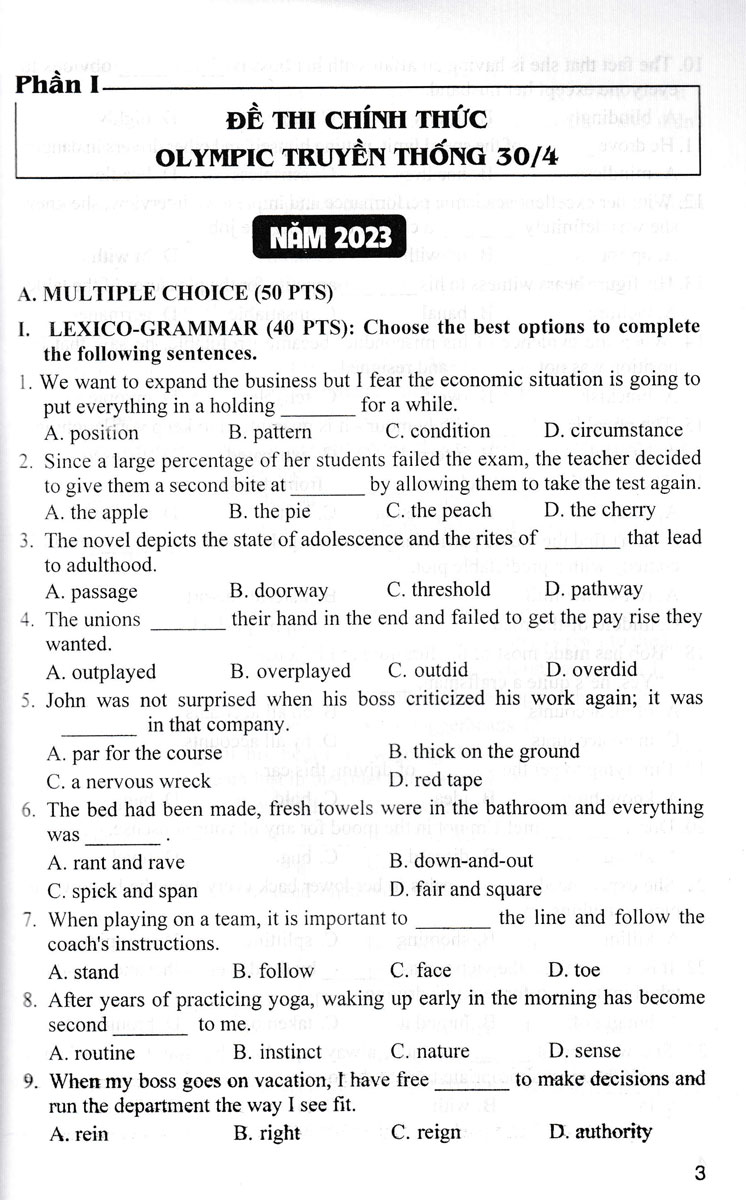 Thông số kỹ thuật Đề Thi Olympic 30 Tháng 4 Tiếng Anh (HA)