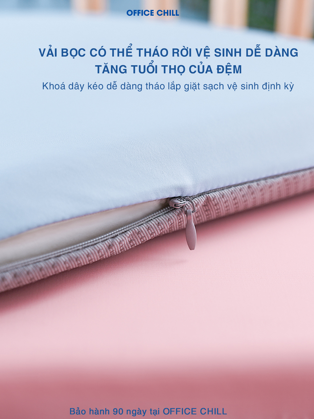 - Bọc vải lụa sữa có khoá dây kéo dễ dạng giặt vệ sinh