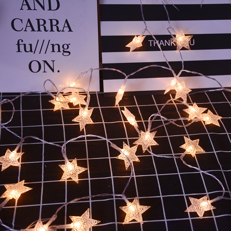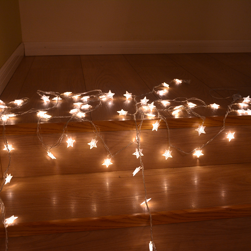 Dây đèn LED hình ngôi sao kích thước 4cm giúp bạn trang trí phòng khách, phòng ngủ thêm sang trọng.