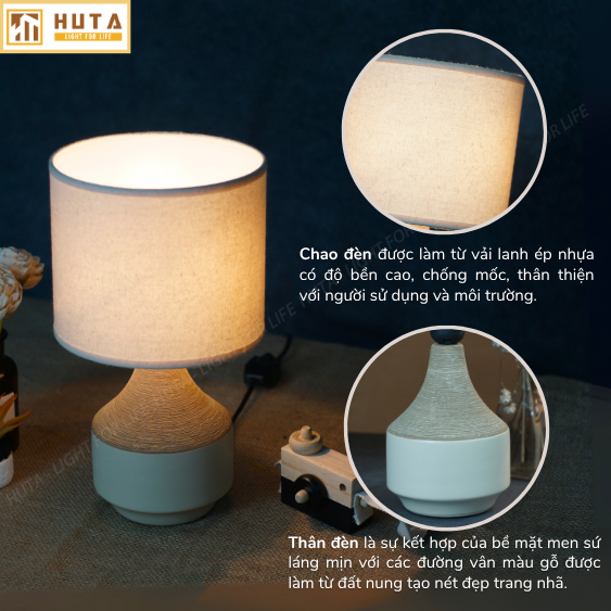 Thông số kỹ thuật Đèn Ngủ Để Bàn Gốm Sứ Cao Cấp HUTA S14 Vân Màu Gỗ Độc Đáo Sang Trọng, Decor Trang Trí Phòng Ngủ, Khách Sạn, Đọc Sách Đầu Giường, Điều Chỉnh Độ Sáng, Ánh Sáng Vàng