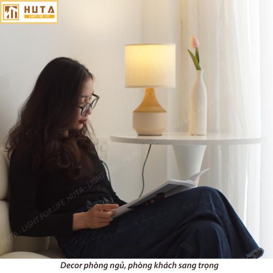 Đèn Ngủ Để Bàn HUTA Light For Life S14 Điều Chỉnh Độ Sáng, Ánh Sáng Vàng, Thân Gốm Vân Gỗ