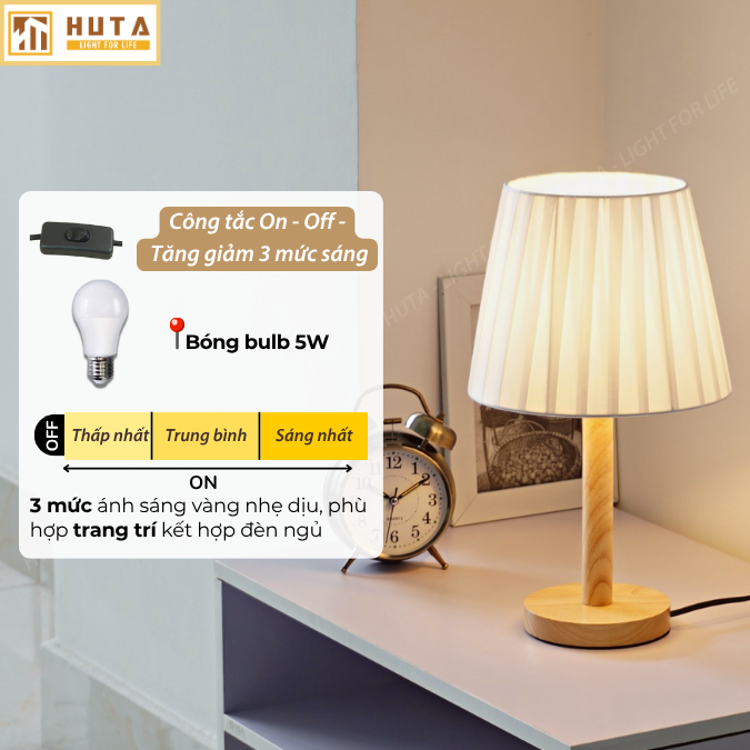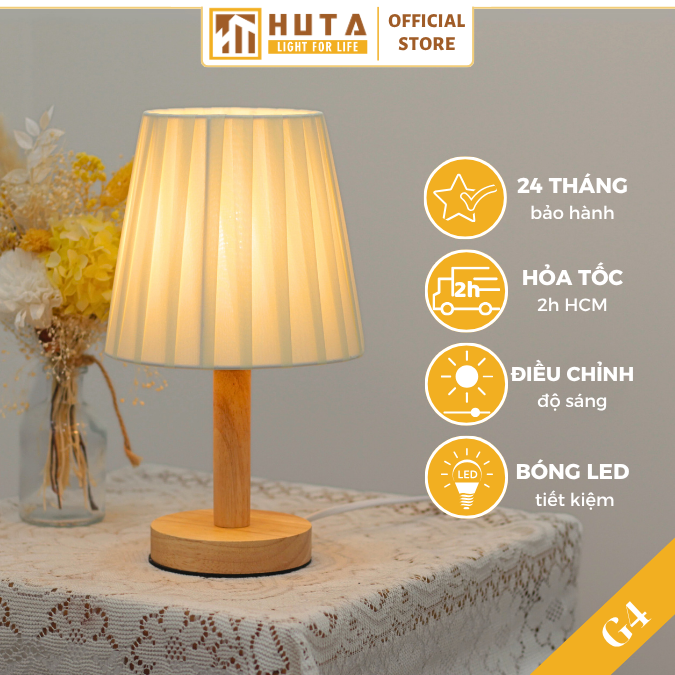 Thông số kỹ thuật Đèn Ngủ Để Bàn HUTA G4 Gỗ Chao Xếp Ly Vintage Dễ Thương, Decor Trang Trí Phòng Ngủ, Đọc Sách Đầu Giường, Điều Chỉnh Độ sáng, Đèn Vàng Bóng LED Tiết Kiệm Điện