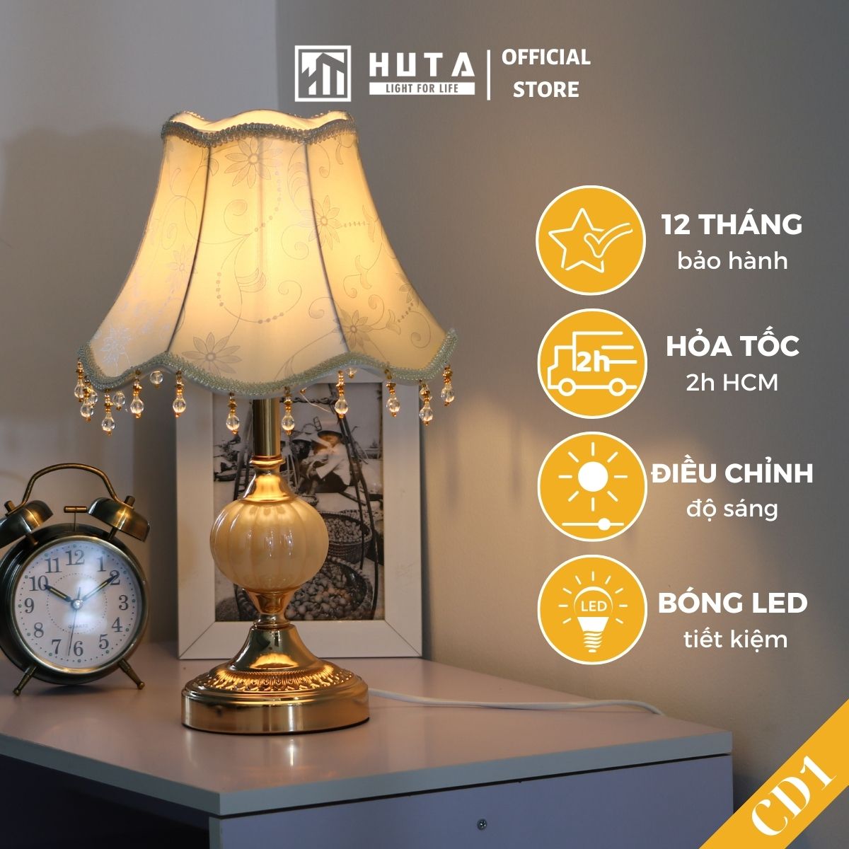 - Đèn ngủ để bàn HUTA CD1 được làm từ thép với bầu sứ tạo nên sự sang trọng cho không gian, dùng để trang trí phòng ngủ, để bàn ăn phòng khách. Có thể điều chỉnh độ sáng phù hợp với không gian, vừa tăng tính thẩm mỹ vừa tiết kiệm điện.