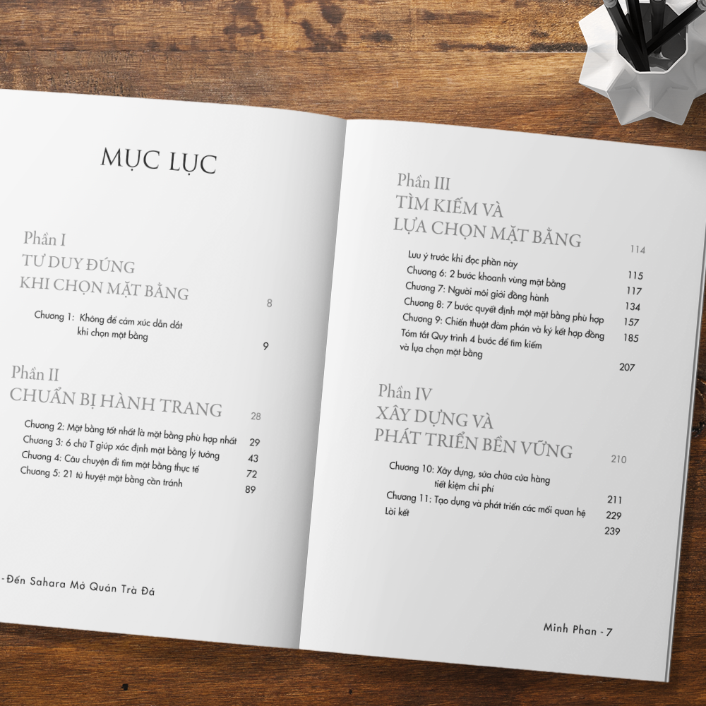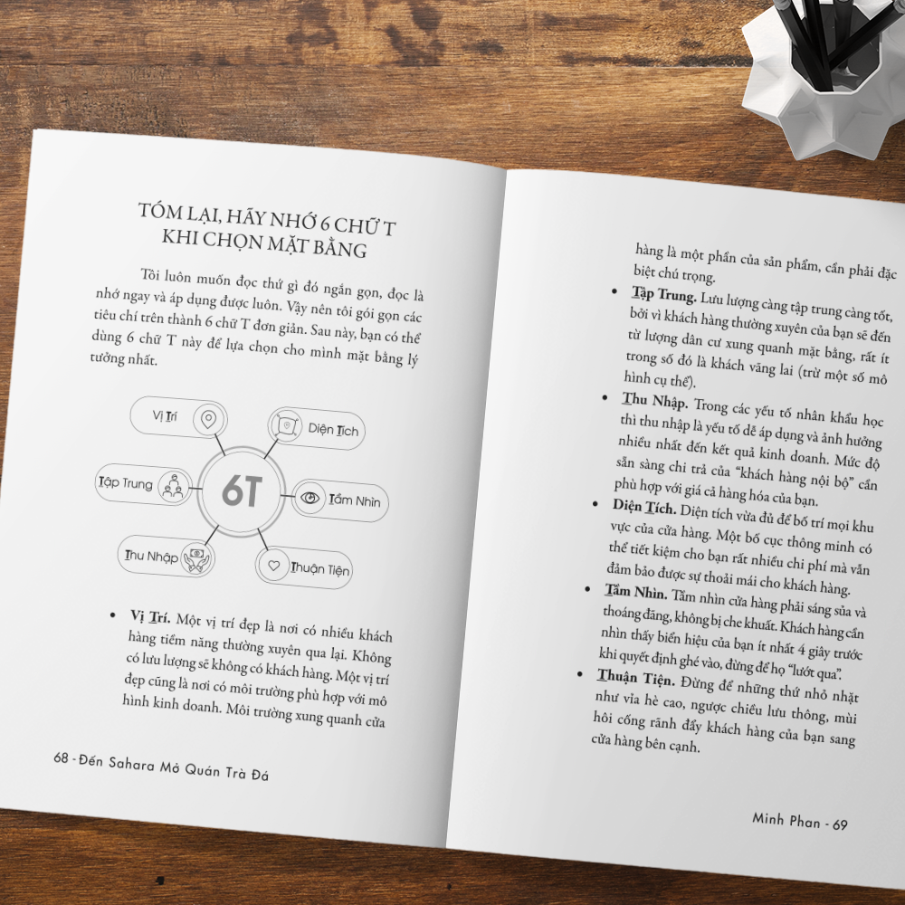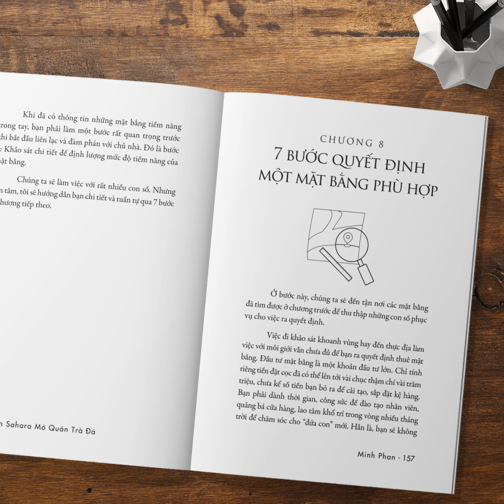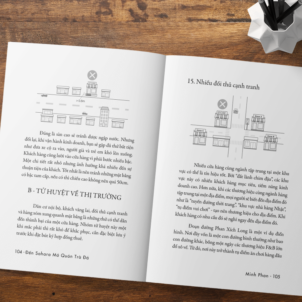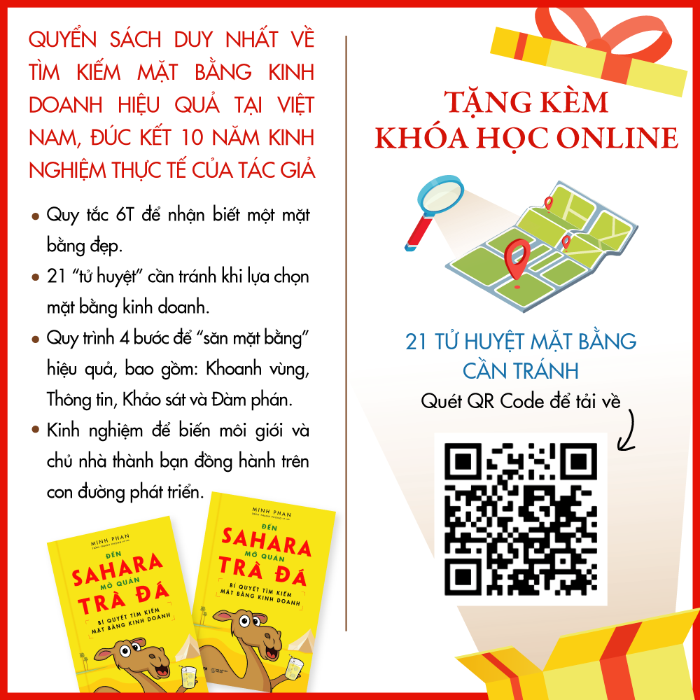 Cuốn sách “Đến Sahara mở quán trà đá - Bí quyết tìm kiếm mặt bằng kinh doanh” là quyển sách đầu tiên và duy nhất giúp giải quyết vấn đề này. Với hơn 10 năm hoạt động trong ngành mặt bằng, là người từng quyết định hàng trăm mặt bằng của 3 chuỗi cửa hàng tiện lợi lớn nhất Việt Nam, tác giả Minh Phan đã đúc kết lại tất cả kinh nghiệm xương máu của m.ình và gói gọn trong tập sách này.