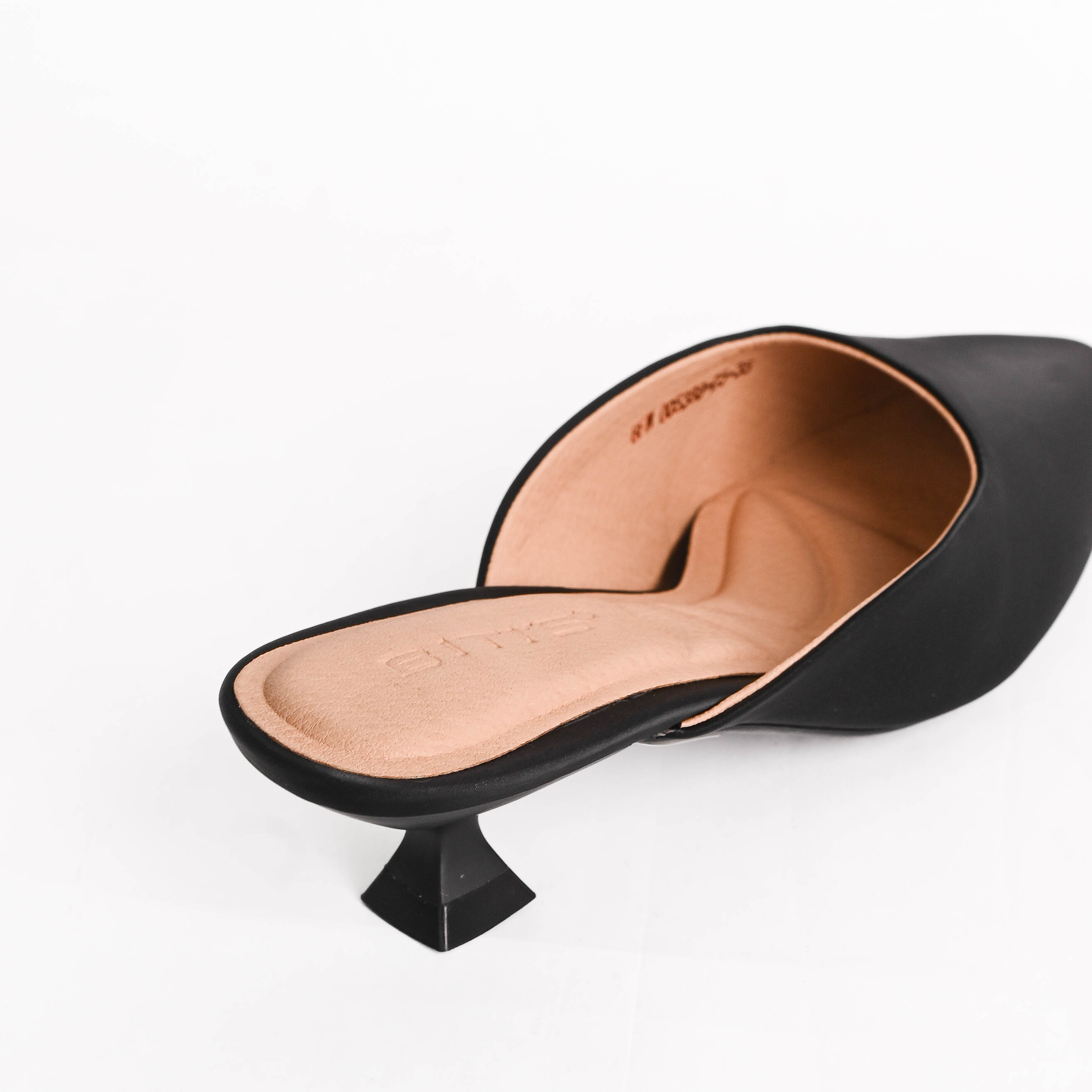 Dép Cao Gót Hở Gót Mũi Nhọn – Màu Kem Thanh Lịch-Đen sang trọng