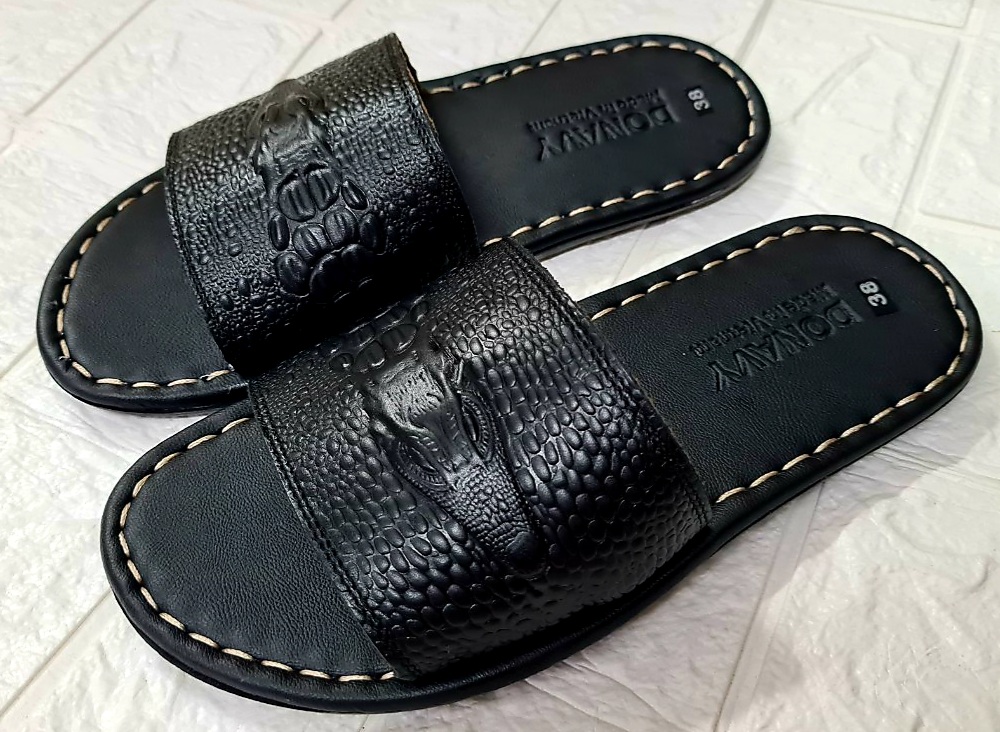 Thông số kỹ thuật Dép quai ngang nam da bò 100%, quai cá sấu, may full quai bao đi mưa