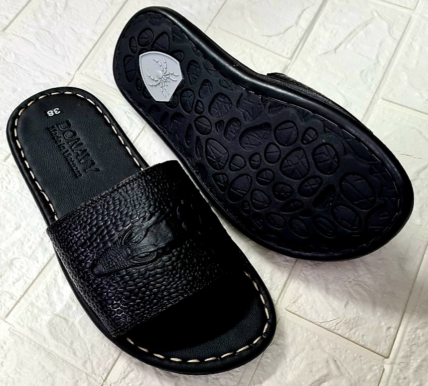 - Dép Nam với chất liệu da bò bền đẹp kết hợp đế cao su êm nhẹ chống trơn trượt giúp bạn Nam luôn thoải mái, tự tin khi đi chơi, dạo phố, đi làm nơi công sở hay đi dự tiệc.