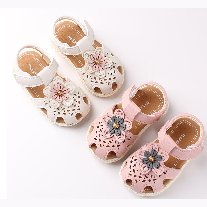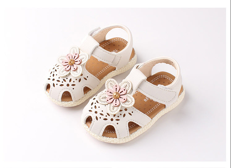 Dép - Sandal tập đi cho bé gái 6 - 18 tháng gắn hoa xinh xắn SG17 được làm bằng chất liệu da PU mềm mại, họa tiết đính hoa xinh xắn, thiết kế với những lát cắt lazer thoáng mát, kiểu bít mũi bảo vệ chân bé tránh va vấp và không bị trôi chân bé lên trên. Kiểu dáng dễ thương, thiết kế tinh tế cho bé gái dễ dàng mix đồ váy, quần áo đi tiệc, đi chơi hoặc ở nhà đều phù hợp.