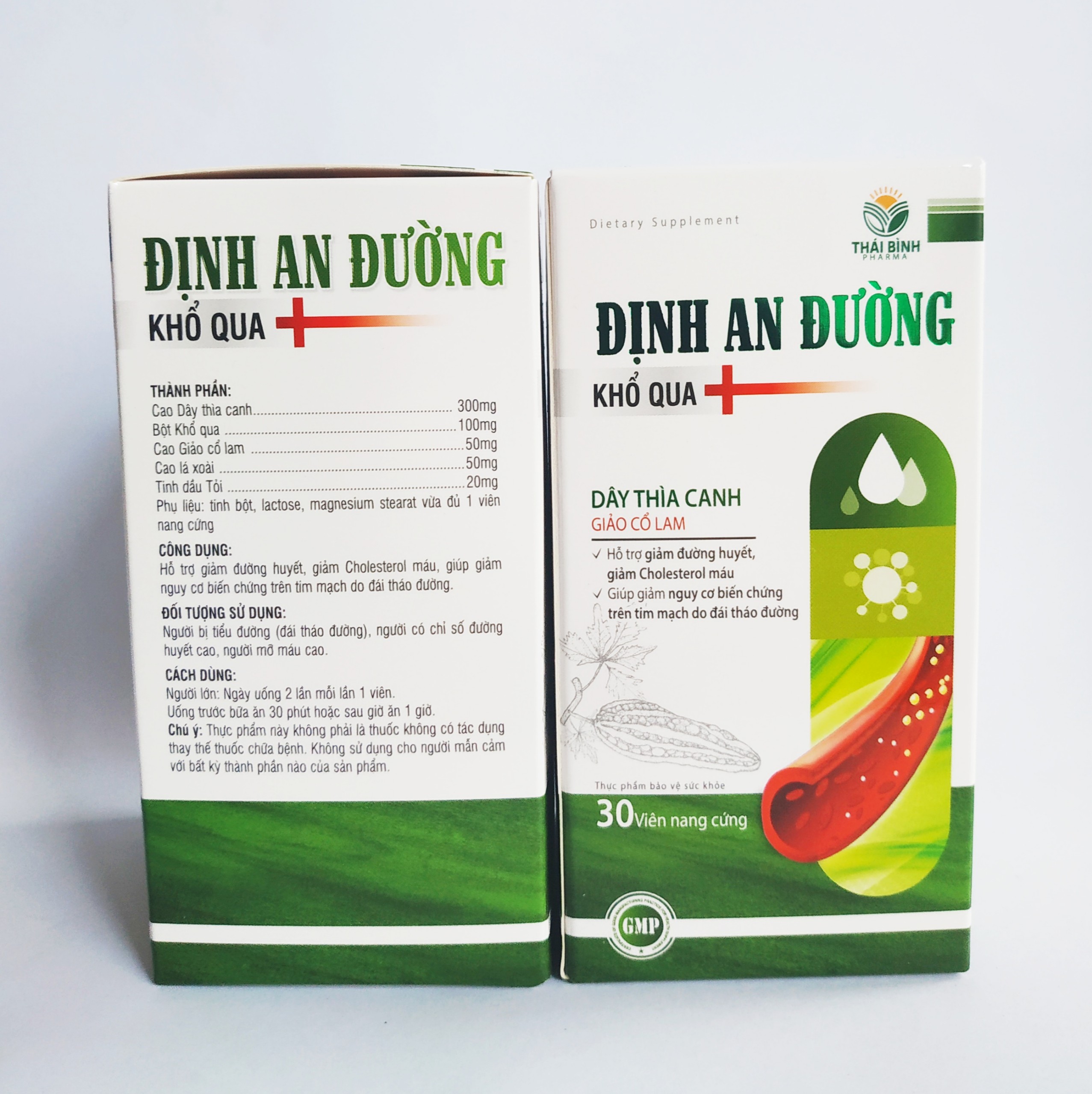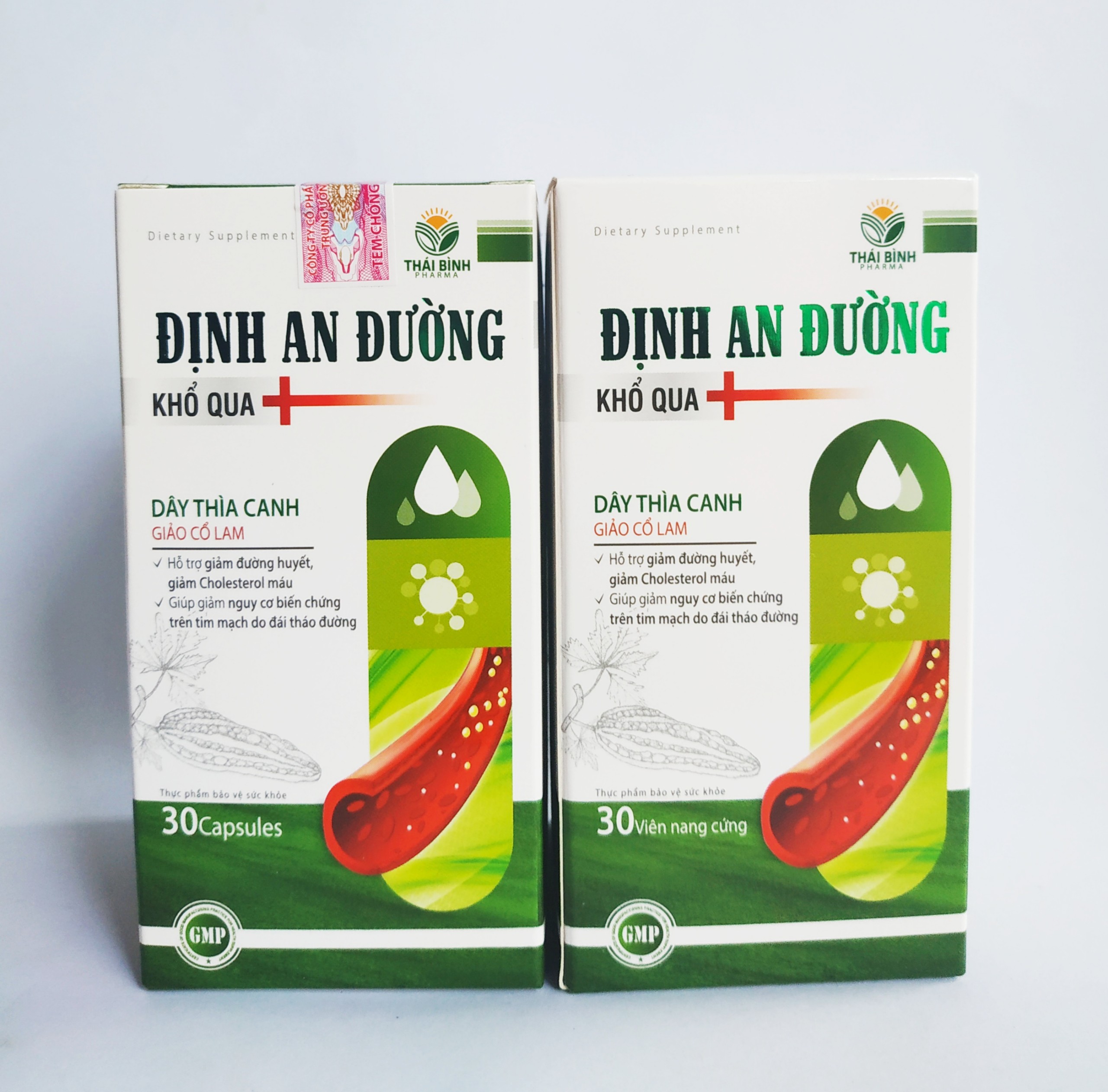 Sản phẩm ĐỊNH AN ĐƯỜNG có thành phần 100% thảo dược tự nhiên kết hợp từ các loại thảo dược quý (Khổ qua, dây thìa canh, cao lá xoài, giảo cổ lam, tinh dầu tỏi) có tác dụng hỗ trợ hạ đường huyết, giảm chỉ số HbA1c, giảm các nguy cơ biến chứng của bệnh tiểu đường. Sản phẩm dùng cho người đái tháo đường, tiền đái tháo đường và người có nguy cơ cao mắc đái tháo đường.