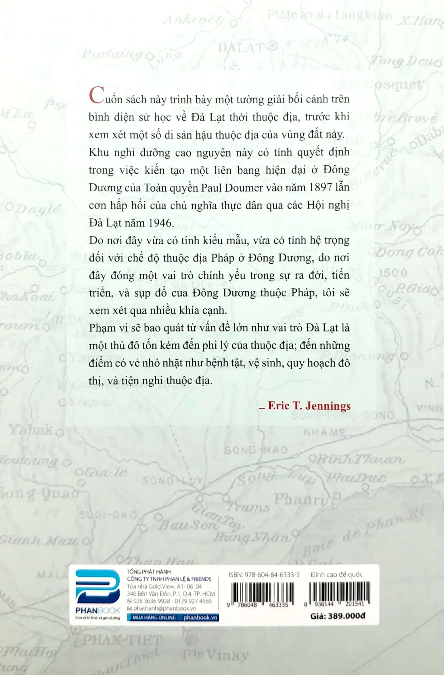Đỉnh Cao Đế Quốc - Đà Lạt Và Sự Hưng Vong Của Đông Dương ThuộcGiá sản phẩm trên Tiki đã bao gồm thuế theo luật hiện hành. Bên cạnh đó, tuỳ vào loại sản phẩm, hình thức và địa chỉ giao hàng mà có thể phát sinh thêm chi phí khác như phí vận chuyển, phụ phí hàng cồng kềnh, thuế nhập khẩu (đối với đơn hàng giao từ nước ngoài có giá trị trên 1 triệu đồng).....