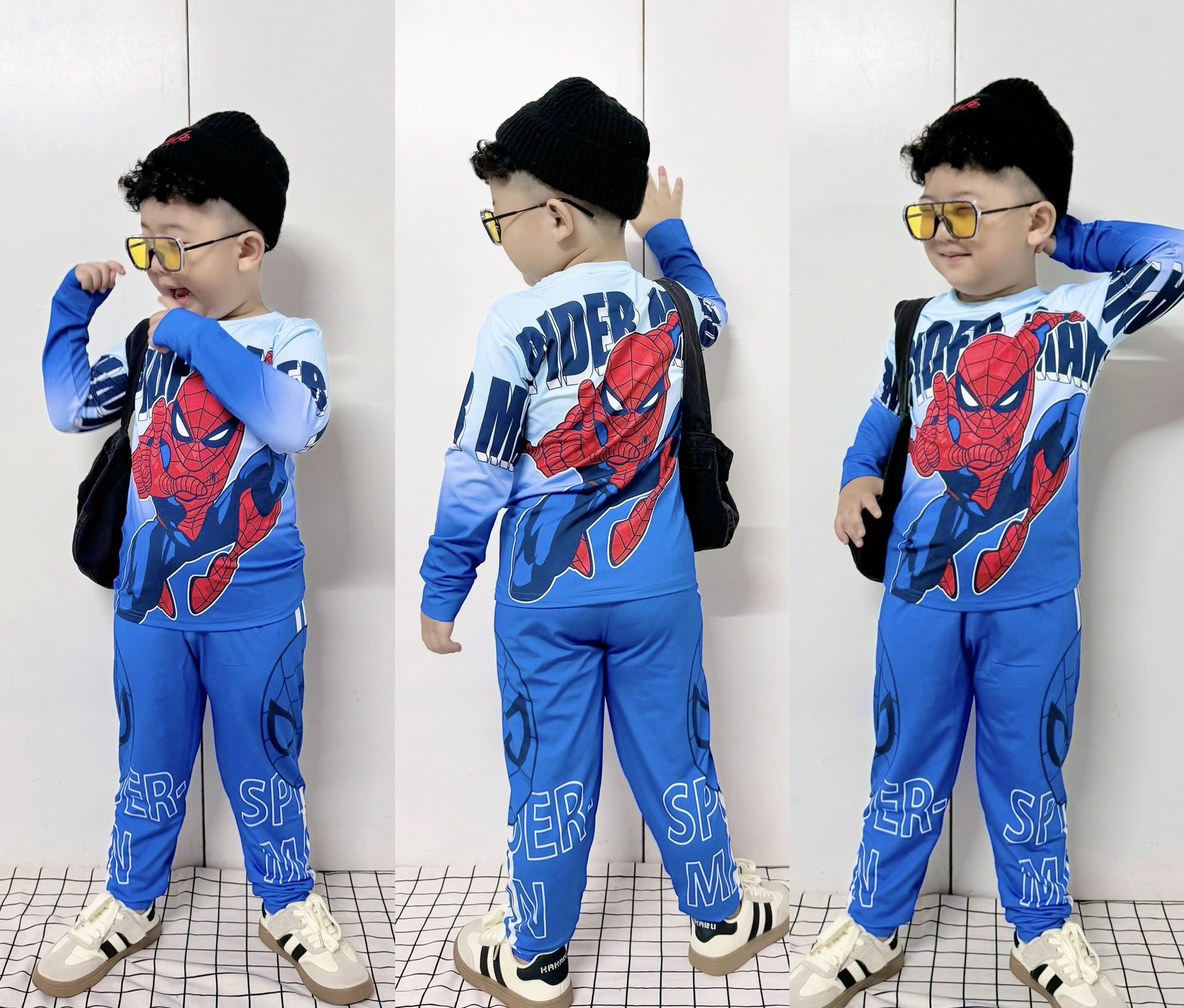 Thông số kỹ thuật Đồ bộ bé trai, Bộ ngủ dài tay cho bé trai hình thể thao Siêu nhân từ 12-40kg chất thun lạnh mềm mịn mát