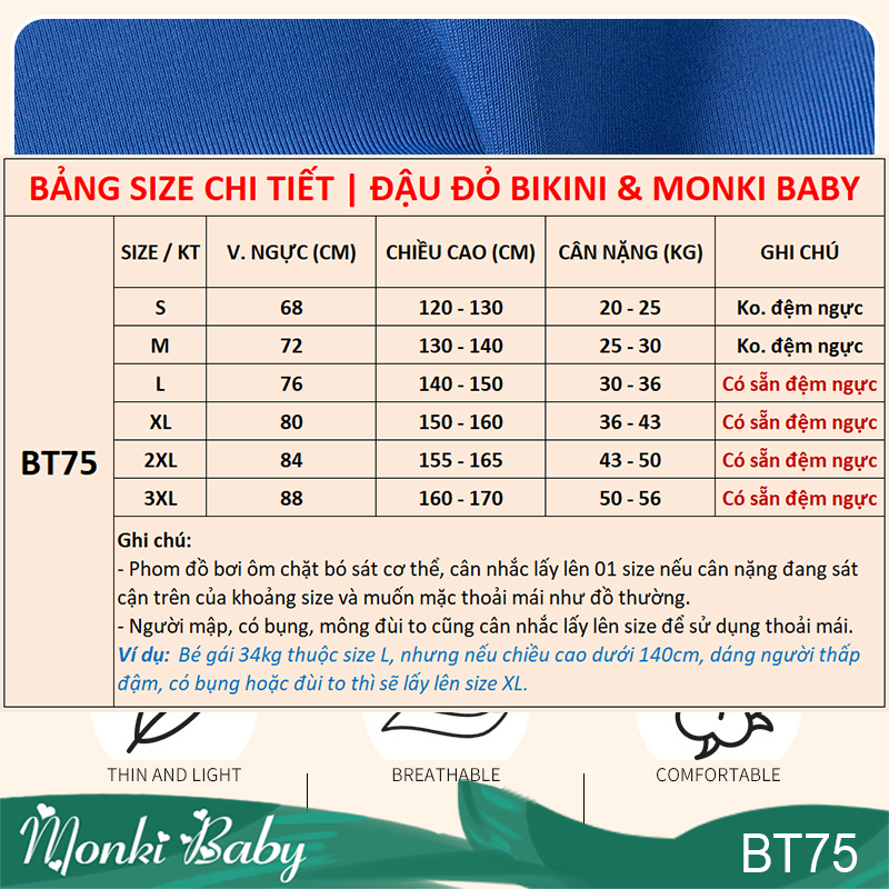 Thông số kỹ thuật Đồ bơi áo tắm liền thân quần đùi lỡ cho bé gái tuổi teen vừa và lớn, size 25-60kg, kín đáo, gọn gàng, thời trang, thun bơi lạnh đẹp, co giãn tốt | BT75
