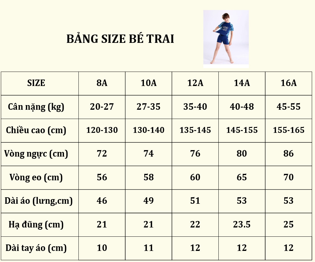 Thông số kỹ thuật Đồ bơi cho bé trai quần short size lớn đến 55kg