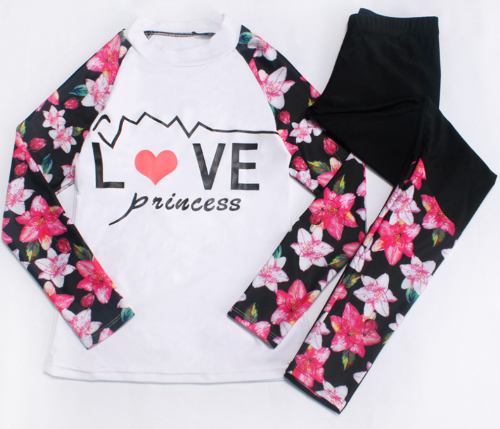 Đồ Bơi Hai Mảnh Nữ Tay Dài Quần Dài Họa Tiết Lovely Và Hoa Xinh AT228 MayHomes Long Sleeves And Long Pants Women Swimwear With UPF 50 Sun Protection với thiết kế dễ thương, kiểu dáng thể thao tôn dáng, tôn thêm đường nét của bạn gái, giúp tự tin hơn nơi bãi tắm. Chất liệu thun co giãn, bền chắc.