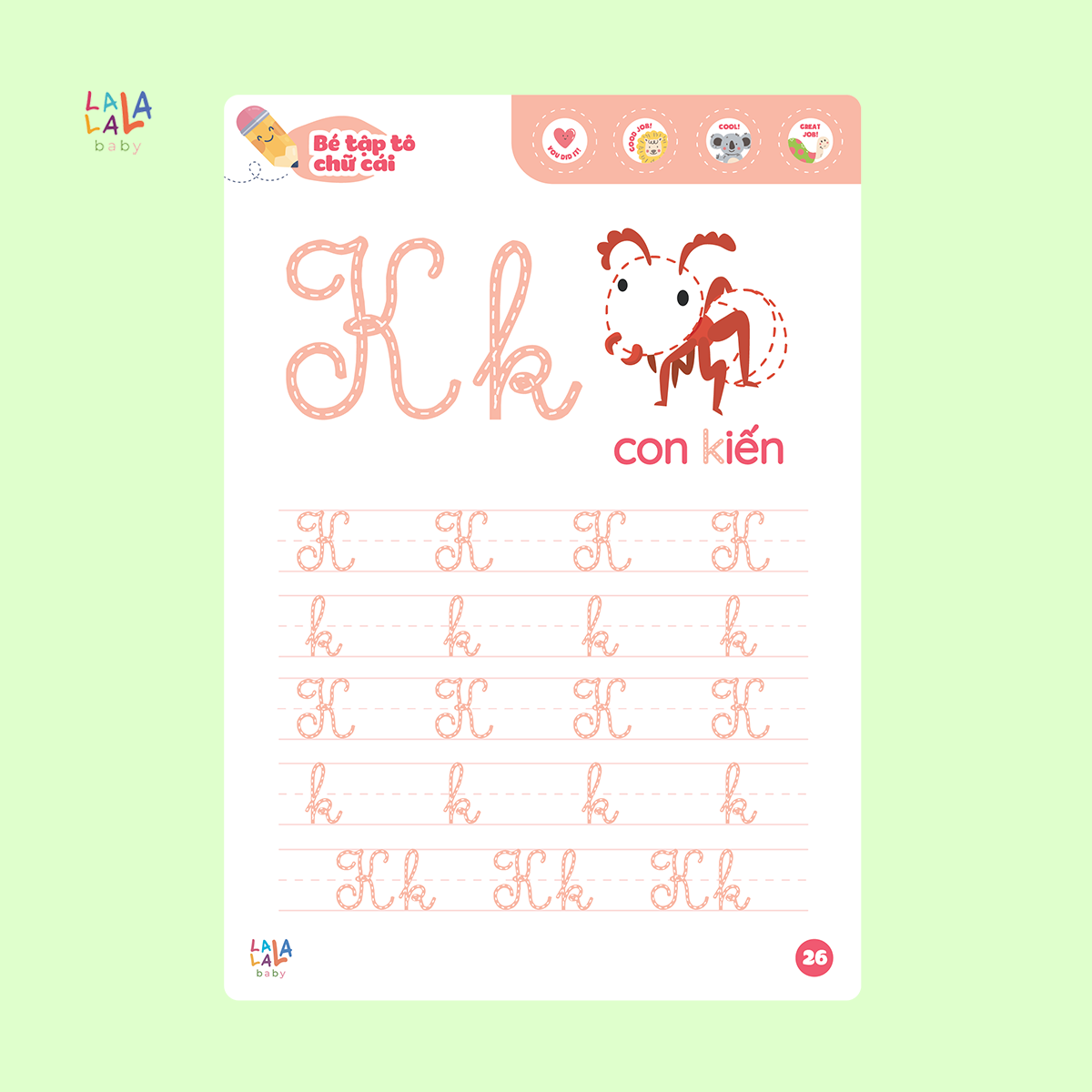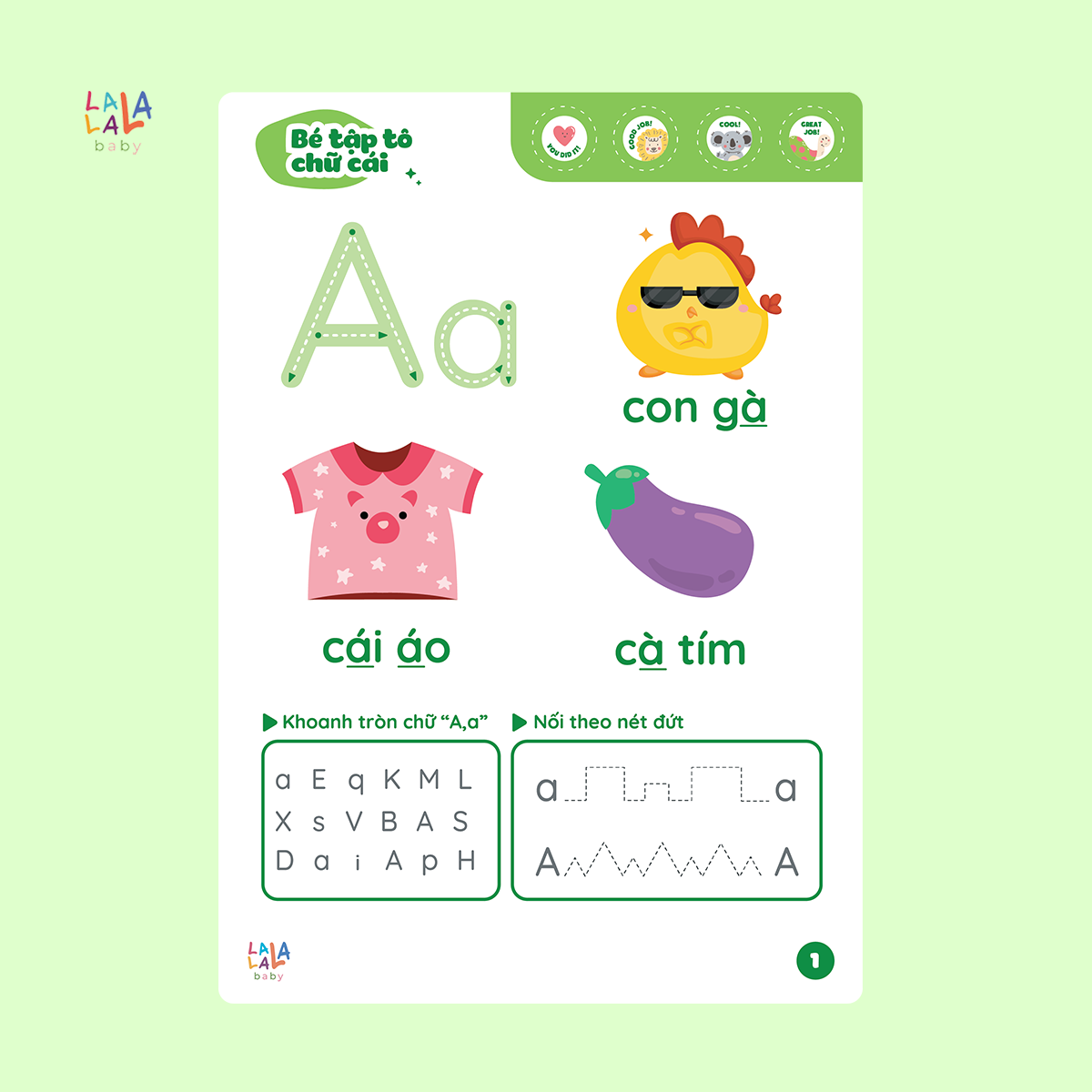 Hoàn thiện các chữ cái với ví dụ minh họa thực tế về các con vật, đồ vật bằng Tiếng Việt