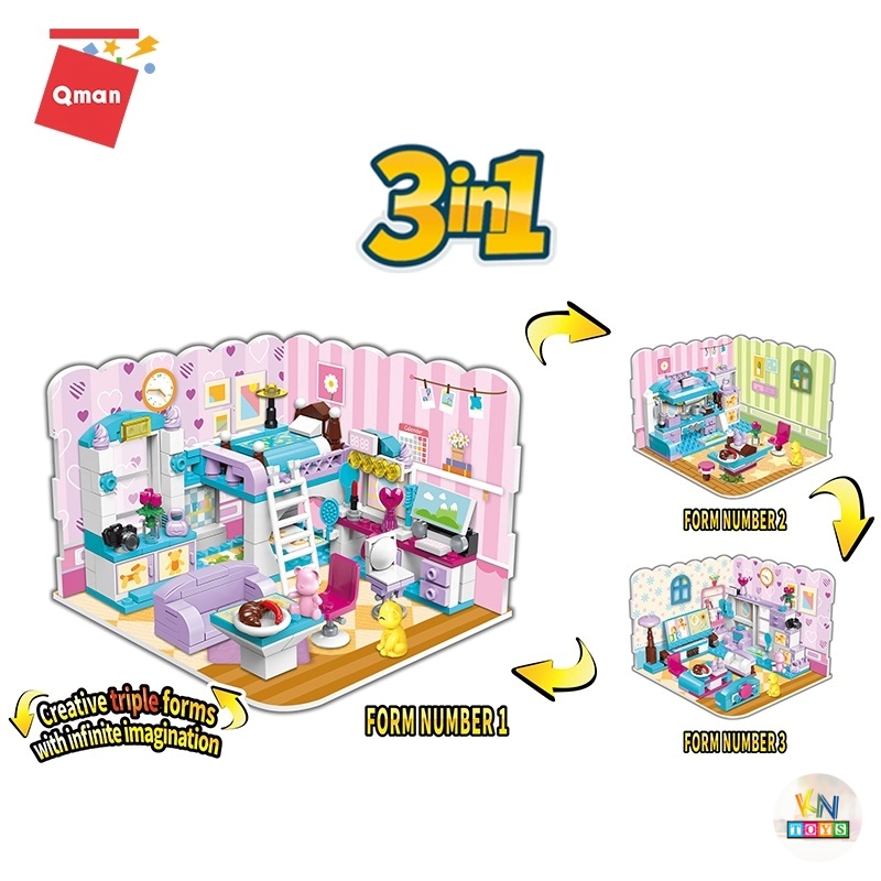 Đồ chơi lắp ghép,xếp hình Qman 4801: Phòng của bé gái
