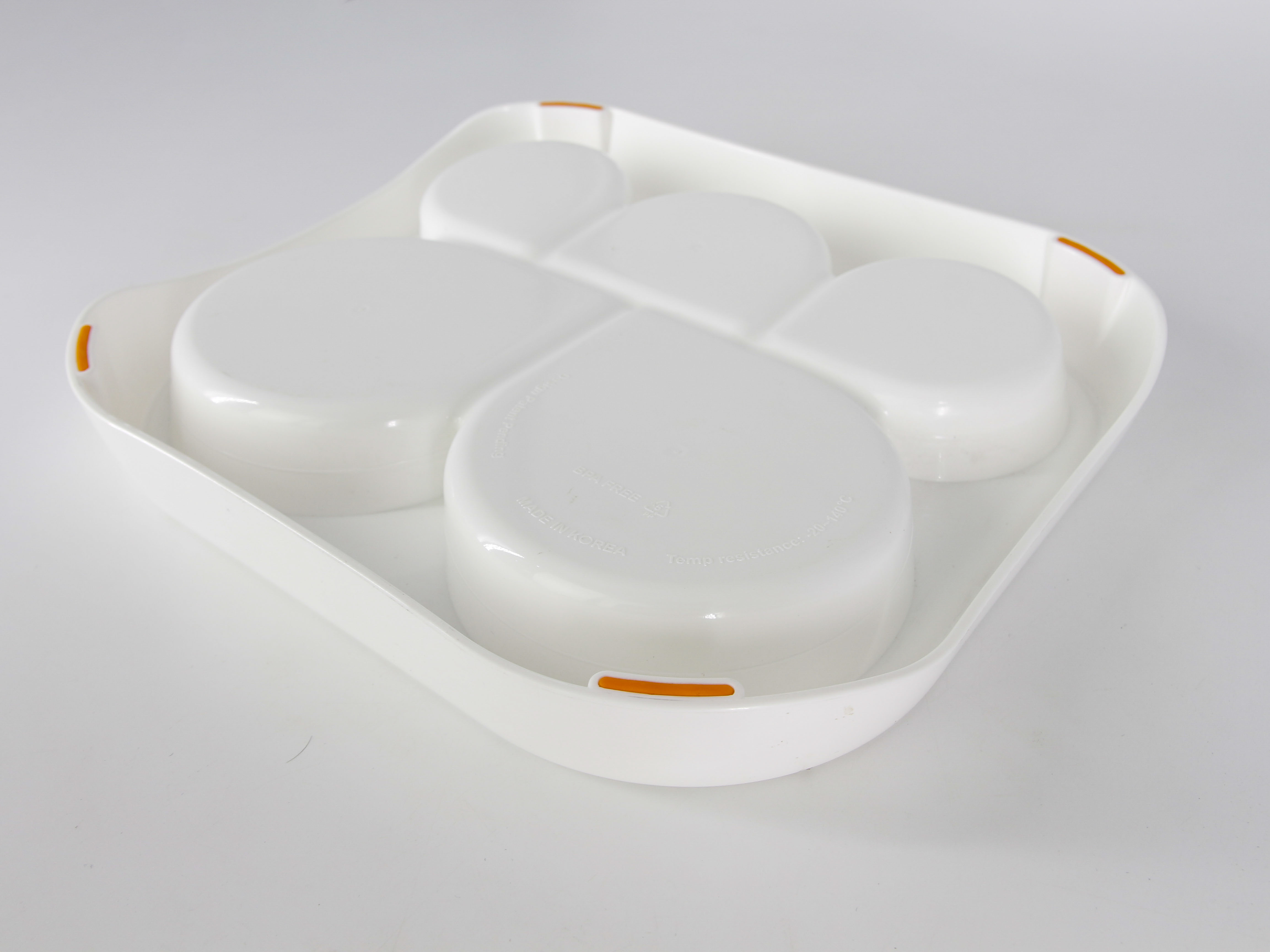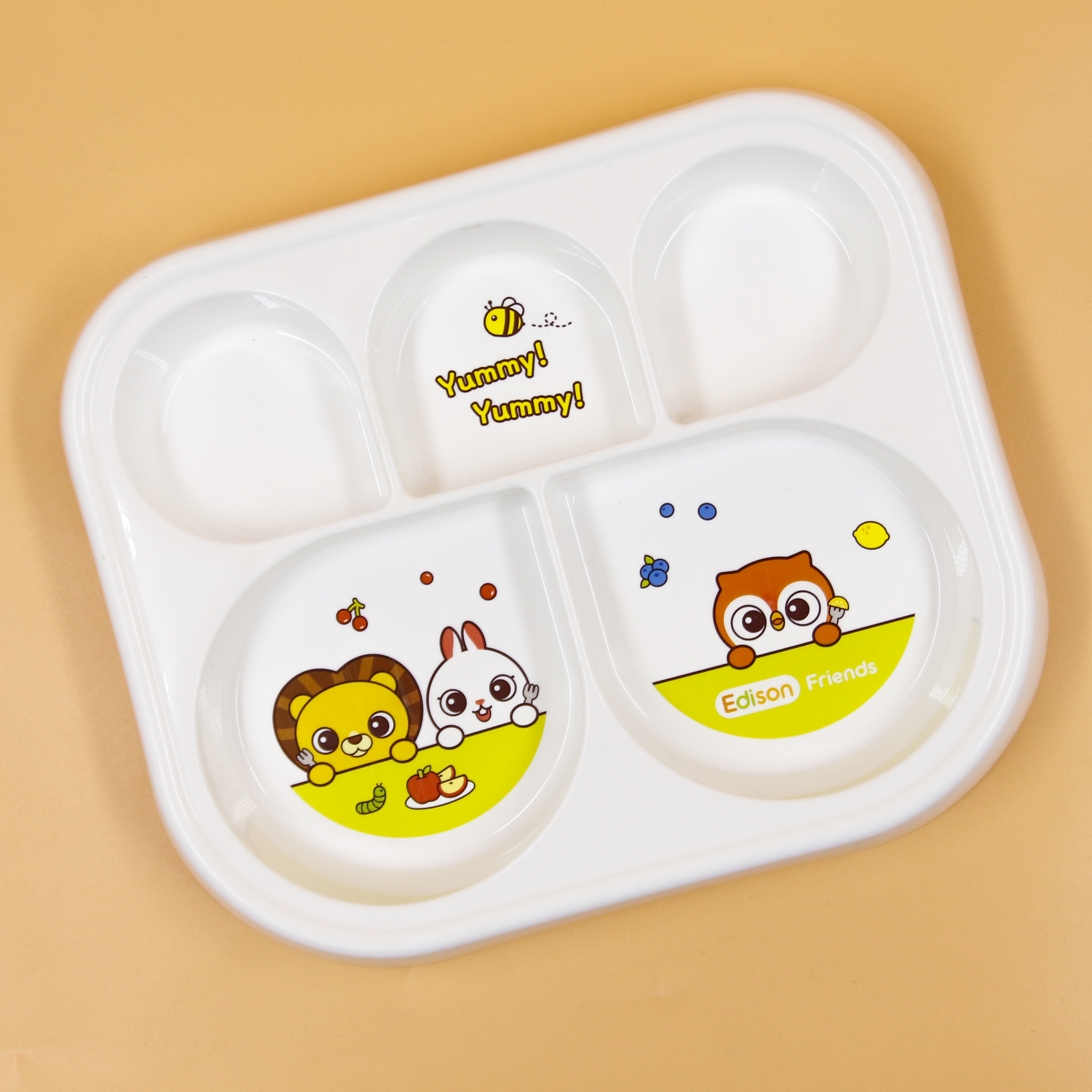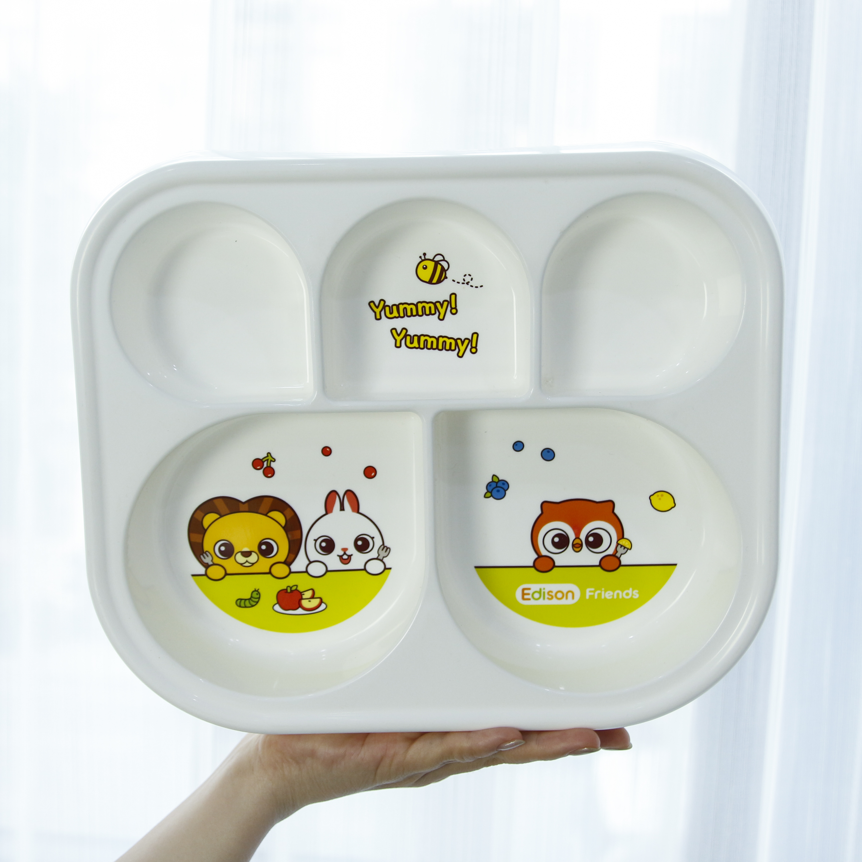 Khay chia ngăn thức ăn với góc bo tròn giúp bé dễ xúc đồ ăn hơn