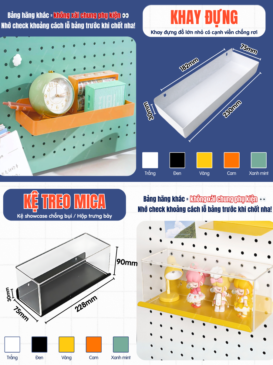 Hộp bút + khay đựng sâu + kệ L ngắn + kệ L Dài + kệ tam giác Dola Home để vật dụng cần thiết - Phụ kiện bảng Pegboard