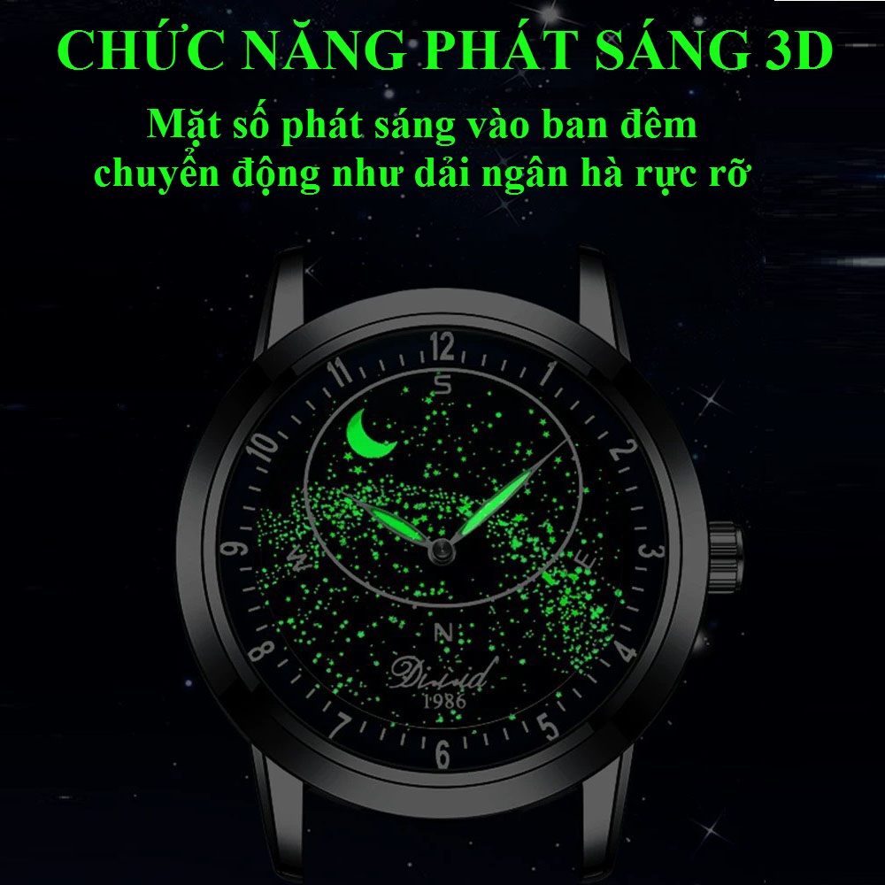 Thông số kỹ thuật Đồng hồ cơ nam tự động DIZIZID Automatic chính hãng - Dây da cao cấp - Chống nước tốt - Thiết kế dải ngân hà dạ quang chuyển động độc đáo DZCTD99