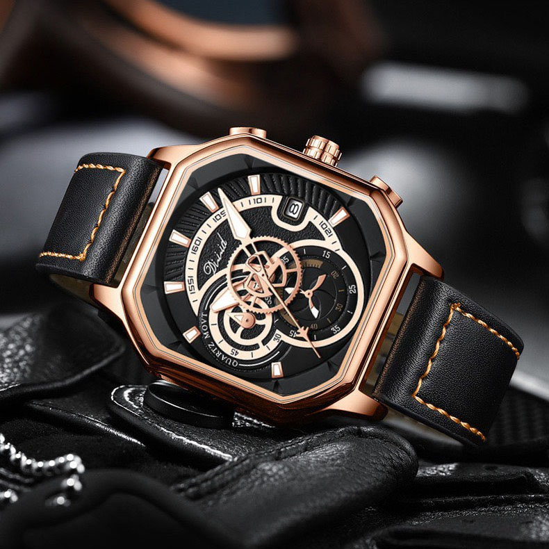 Thông số kỹ thuật Đồng hồ nam dây da DIZIZID chính hãng mặt vuông cá tính, Chạy full 6 kim và lịch ngày, Kim dạ quang cao cấp, Chống nước cực tốt, Tặng kèm pin dự phòng DZBD79