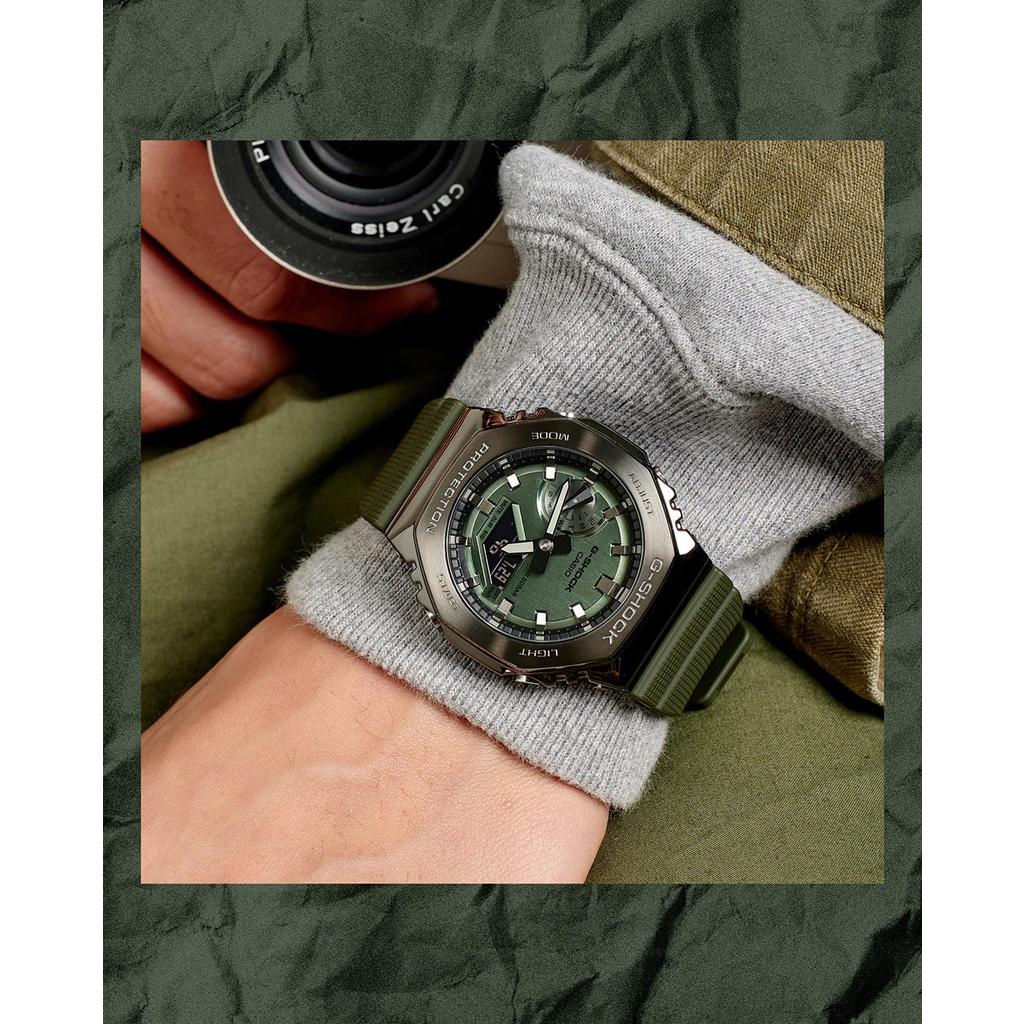 Được rèn từ thép không gỉ với bề mặt có những đường kẻ mảnh tròn trịa, đường gờ mạnh mẽ cho kiểu dáng siêu phong cách. Mặt số được xử lý bằng phương pháp lắng đọng hơi nước, mang đến vẻ ngoài kim loại được thiết kế tỉ mỉ, phù hợp với đồng hồ G-SHOCK bằng kim loại cổ điển. Vòng đeo tay bằng chất liệu uretan thông thường được nâng tầm nhờ sự cải tiến ở họa tiết chấm vuông tinh xảo.