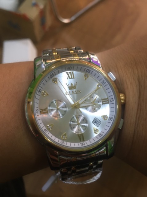 Thông số kỹ thuật Đồng Hồ Nam OLEVS-2858 Mặt Tròn Mạ Vàng 18k Chống Nước Chạy Đủ 6 Kim Có Ô Lịch Ngày Khóa Bướm Có Hộp In Logo Chính Hãng