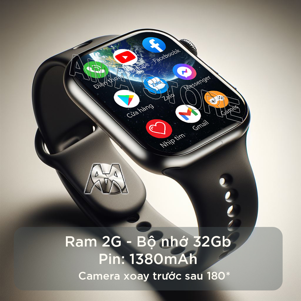 Đồng hồ Thông minh Android Camera xoay 180 màn hình cong AMA Smartwatch S16 Black Lắp sim nghe gọi độc lập Kết nối Wifi Tải app CH. Play như Điện thoại FB Skyper xem phim chơi game cho Trẻ em Học sinh Người lớn AMA Smartwatch S16 2024 hàng nhập khẩu