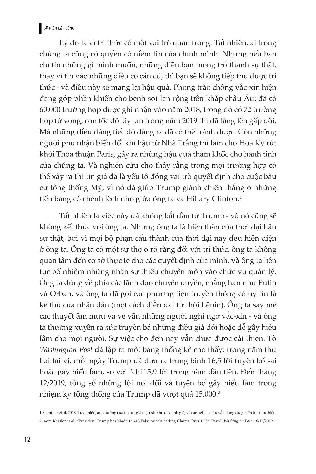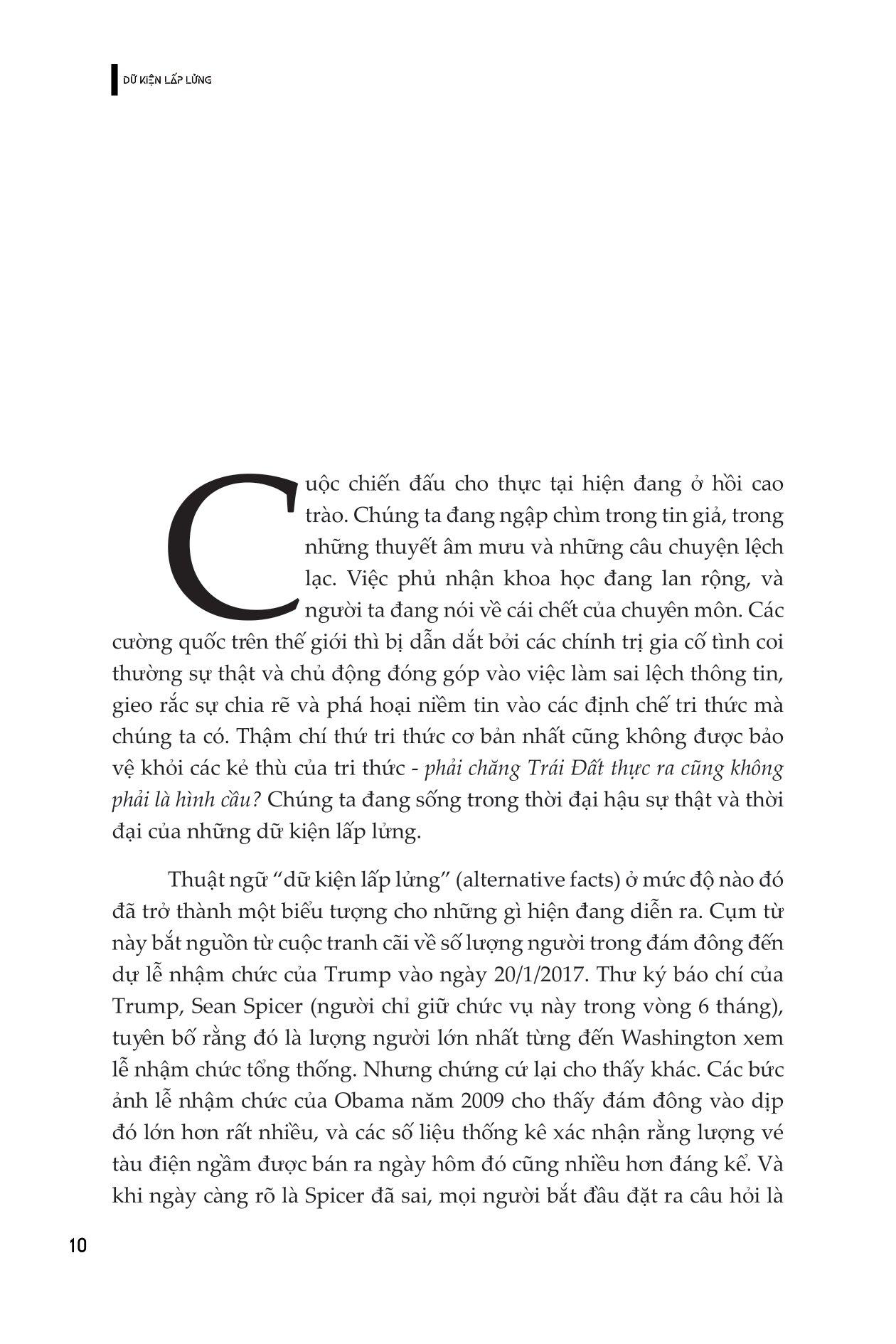 “Dữ kiện lấp lửng (alternative facts)” là một thuật ngữ đã trở nên nổi tiếng vào năm 2017, khi người phát ngôn của chính quyền Trump sử dụng nó để bảo vệ những tuyên bố sai sự thật của Tổng thống về quy mô đám đông tại lễ nhậm chức của ông. Thuật ngữ này đề cập đến ý tưởng rằng có thể có nhiều phiên bản sự thật có giá trị như nhau và mọi người được tự do lựa chọn tin vào phiên bản nào.