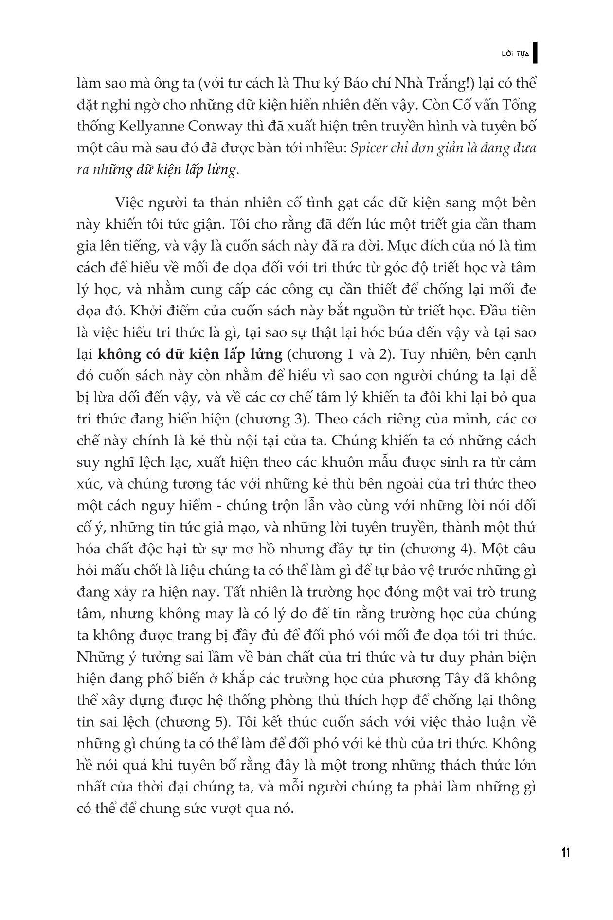 Dữ kiện lấp lửng của Asa Wikforss là một phân tích sâu sắc và kịp thời về khái niệm “dữ kiện lấp lửng” và ý nghĩa của nó đối với nhận thức của chúng ta về sự thật và kiến thức. Cuốn sách cung cấp một sự bảo vệ thuyết phục về tầm quan trọng của lập luận dựa trên bằng chứng và một quan niệm mạnh mẽ về sự thật trong diễn ngôn đương đại.