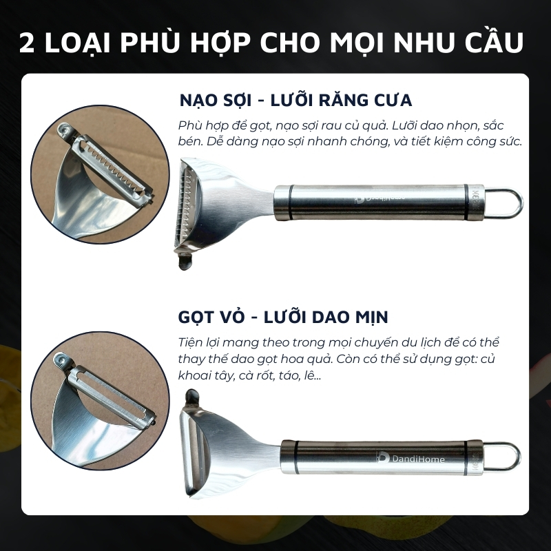 Thông số kỹ thuật Dụng cụ gọt vỏ, nạo sợi inox 304 DandiHome cao cấp