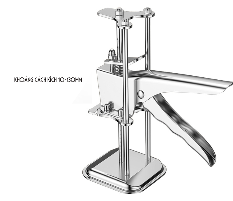 - Loại 2: Khoảng cách kích: 10-130mm – đế vuông, 3 trụ có thước