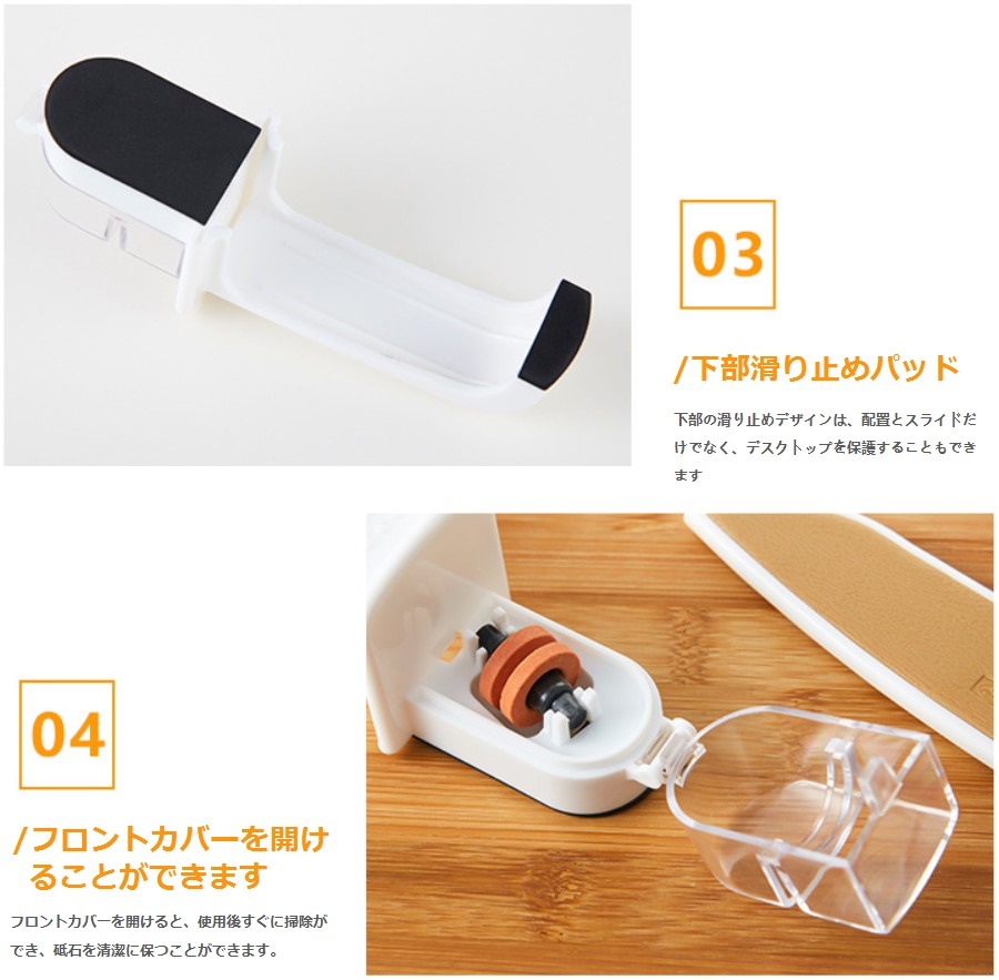 - Dùng để mài sắc dao nhanh chóng, có tay cầm vững chắc không bị trơn trượt, dễ dàng vệ sinh, không bị bám bẩn.