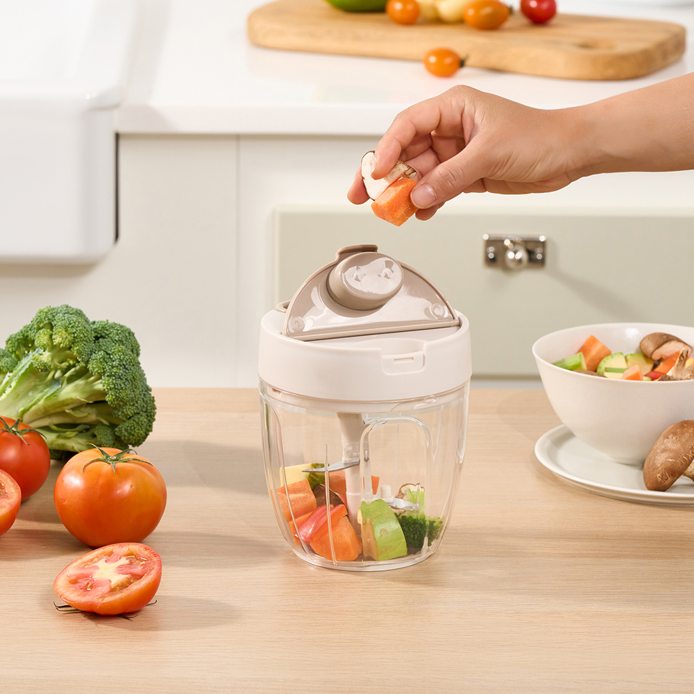 - Giữ nắp bằng một tay và nhẹ nhàng kéo bằng tay còn lại để băm thực phẩm
