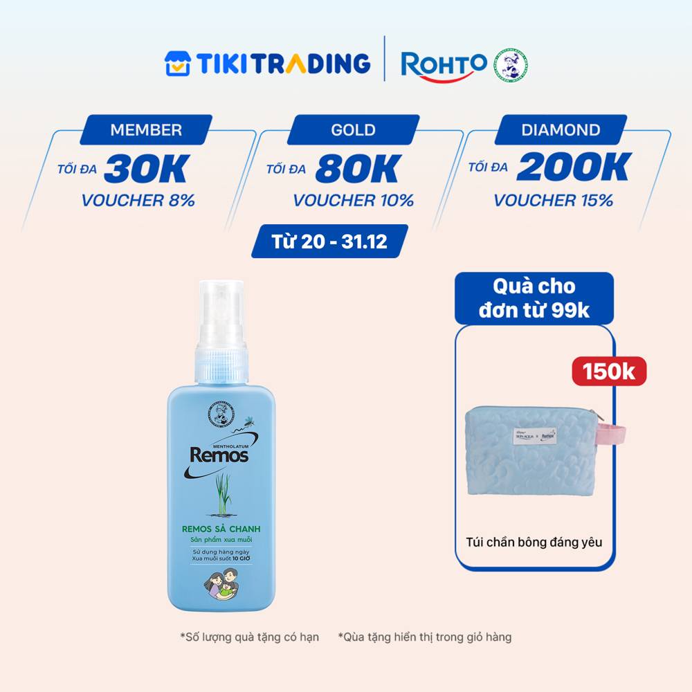 | Dung dịch chống muỗi dạng phun sương Remos Mentholatum hương Sả Chanh 70ml Tên model: Dung dịch chống muỗi dạng phun sương Remos Mentholatum hương Sả Chanh 70ml Mentholatum Remos - Xịt chống muỗi độc đáo, chứa Diethyltoluamide 15% đã được WHO và EPA chứng nhận hiệu quả và tính an toàn trong việc xua muỗi. Mentholatum Remos đạt hiệu quả xua muỗi suốt 10 giờ. Mentholatum Remos còn có Aloe Vera và Vitamin E giúp giữ ẩm và nuôi dưỡng da. Đặc tính sản phẩm: - Xịt chống muỗi Rohto Mentholatum Remos giúp bảo vệ hiệu quả khỏi muỗi đốt suốt 10 giờ. Hoạt chất xua muỗi đã được WHO và EPA chứng nhận hiệu quả và tính an toàn trong việc xua muỗi. - Chứa Aloe Vera và Vitamin E giúp giữ ẩm và nuôi dưỡng da. - Không nhờn rít - Sử dụng cho người lớn và trẻ em từ 4 tuổi trở lên Thành phần & Công dụng: - Xịt chống muỗi Rohto Mentholatum Remos chứa Diethyltoluamide 15% giúp xua muỗi hiệu quả suốt 10 giờ. Hoạt chất này đã được WHO và EPA chứng nhận hiệu quả và tính an toàn trong việc xua muỗi. - Aloe Vera và Vitamin E giúp giữ ẩm cho da. - Mùi hương tự nhiên dễ chịu và hỗ trợ xua đuổi muỗi: Sả Chanh. Hướng dẫn sử dụng: Để cách bề mặt da 10-15cm, xịt một lượng thích hợp lên trên da rồi thoa đều. Đối với vùng mặt hay cổ, phun dung dịch ra lòng bàn tay rồi thoa lên da. Lưu ý: - Chỉ sử dụng ngoài da. Trường hợp sản phẩm dây vào mắt, miệng hay kích ứng do da mẫn cảm, nhanh chóng rửa sạch bằng nước sạch. Nếu lỡ nuốt phải, uống nhiều nước, không cố gây nôn ói. Nếu tình trạng nghiêm trọng, đến gặp bác sĩ với nhãn vỏ sản phẩm. - Tránh để sản phẩm tiếp xúc trực tiếp lên mắt, miệng, vết cắt, vết thương hở, vùng da bị kích ứng. - Ngưng sử dụng nếu bị dị ứng. - Không sử dụng và bảo quản gần nguồn lửa. - Để xa tầm tay trẻ em. - Để nơi mát, tránh ánh nắng trực tiếp. - Đọc kỹ hướng dẫn sử dụng trước khi dùng. THÔNG TIN THƯƠNG HIỆU - Thương hiệu: Remos Mentholatum thuộc công ty Rohto-Mentholatum (Việt Nam) - Xuất xứ thương hiệu: Nhật Bản - Nơi sản xuất: Việt Nam - Hạn sử dụng: 3 năm kể từ ngày sản xuất - Số lô & ngày hết hạn: xem trên bao bì sản phẩm *Bao bì có thể thay đổi tùy theo đợt sản phẩm