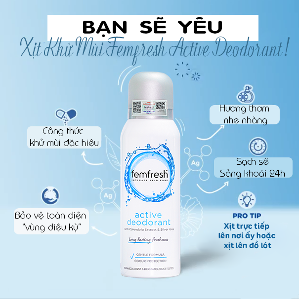 + Xịt Active Deodorant: 125ml - Khử mùi cho người năng động