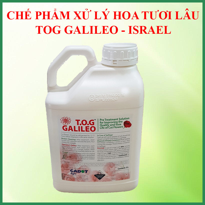 Thông số kỹ thuật Dung Dịch Xử Lý Hoa TOG Galileo của ISRAEL (Chai 1 Lít) dùng bảo quản hoa cắt cành tươi lâu tại Nhà Vườn Trồng Hoa, Vựa Hoa và Chợ Sỉ Hoa. Tỷ lệ dung dịch 0.1% tức chai 1 Lít TOG pha được 1.000 Lít dung dịch xử lý hoa