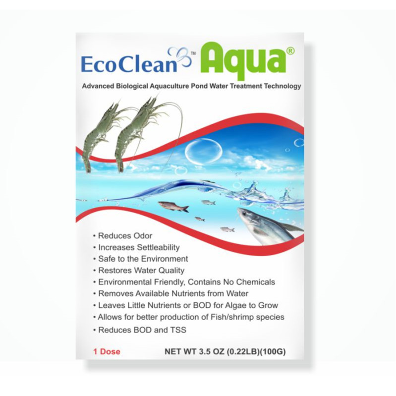 EcoClean Aqua - Men vi sinh xử lý nước ao nuôi tôm, cá là sản phẩm hiệu lực cao, mật độ vi sinh cao, dạng bột được chọn lọc đặc biệt để xử lý tảo và làm sạch ao nuôi thông qua cơ chế cạnh tranh thức ăn trong nước. Ngoài ra, EcoClean Aqua còn có thêm chất phụ gia và vi sinh xử lý nước ao nuôi nhằm kích thích tăng trưởng của tôm và cá.