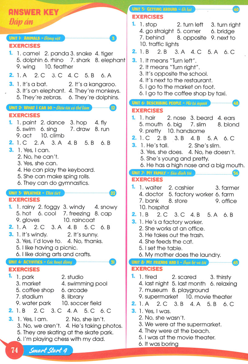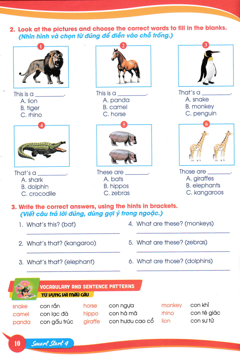 - Phần Exercise bao gồm các bài tập ứng dụng để các em ôn lại các từ vựng đã học, qua đó nhận biết ý nghĩa cũng như cách sử dụng chúng trong từng mẫu câu cụ thể.