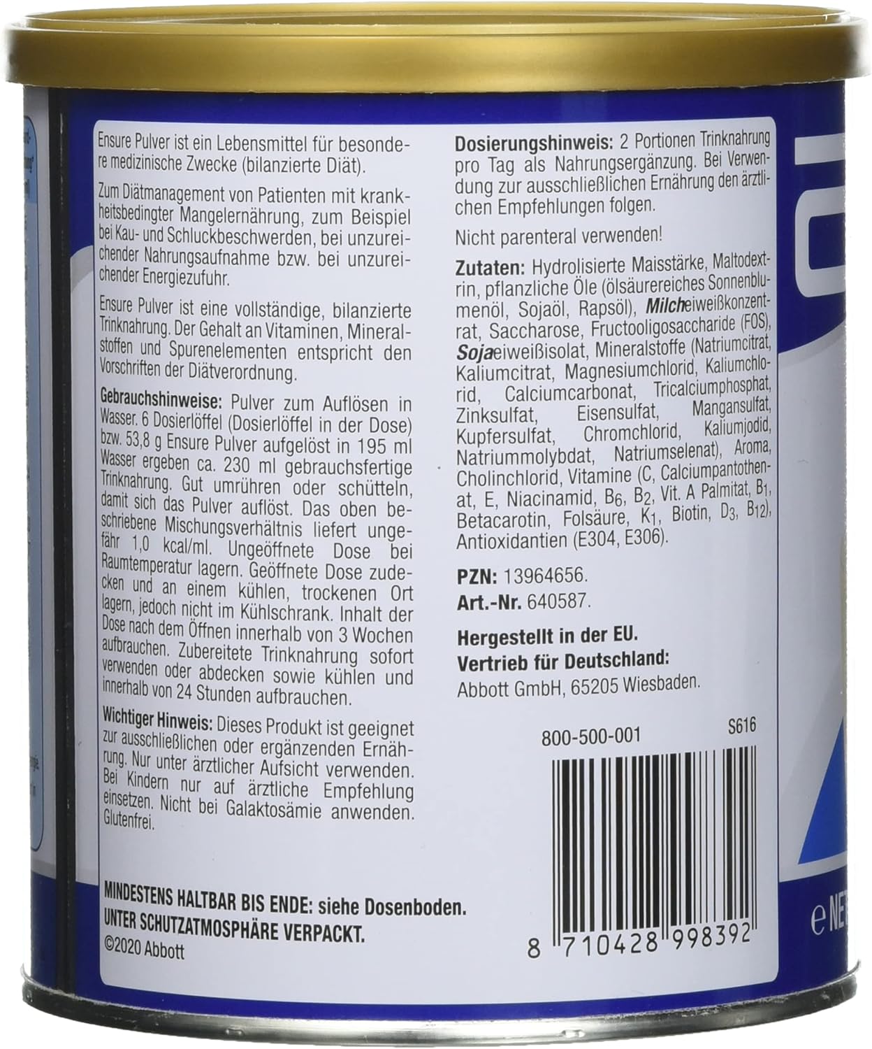 Thông số kỹ thuật Ensure Đức cho người lớn tuổi Ensure Vanille-Geschmask giúp hồi phục sức khỏe cho người gầy, suy dinh dưỡng - QuaTangMe Extaste
