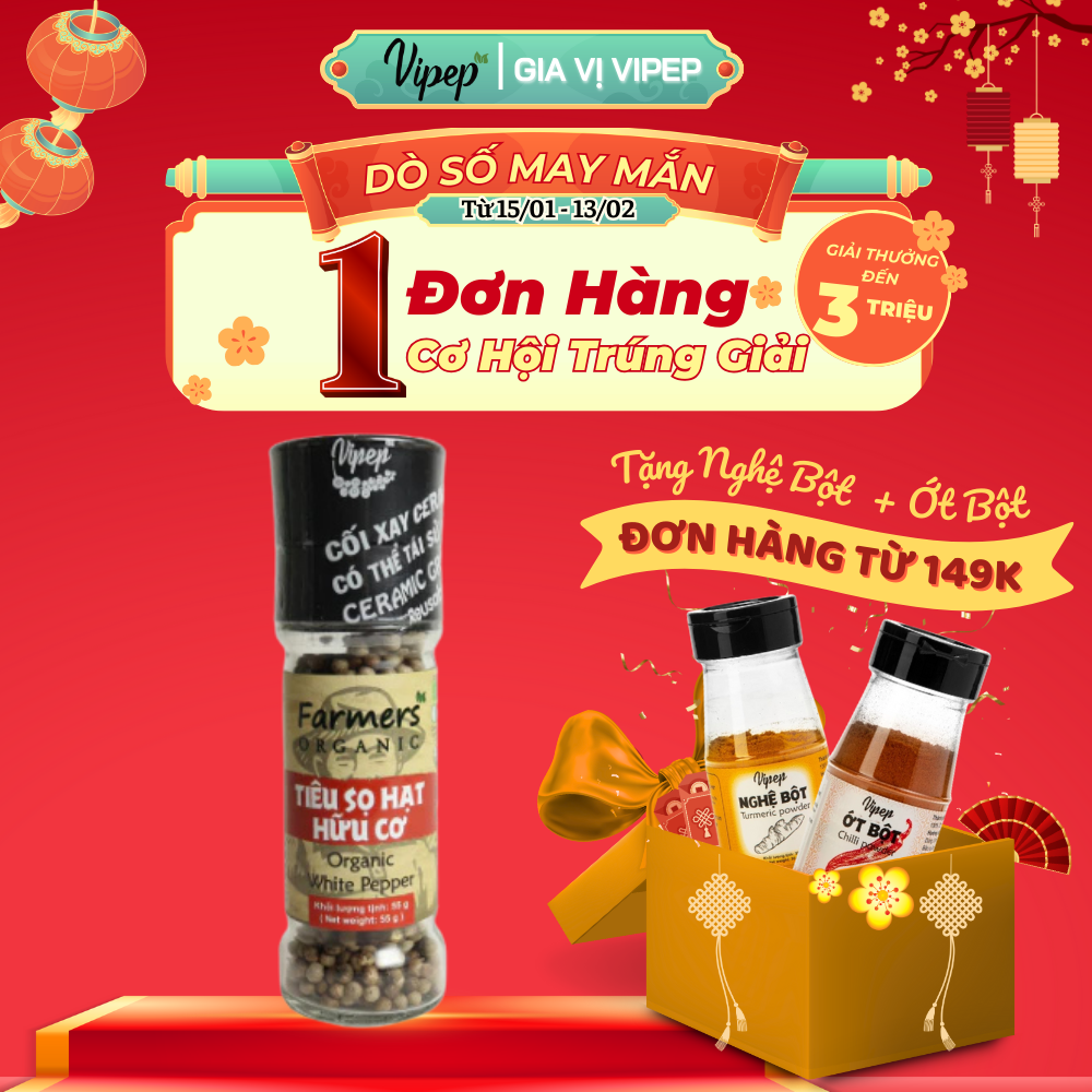 Thông số kỹ thuật Tiêu Sọ Hạt Farmers' Organic Cối Xay Vipep Hũ Thủy Tinh 55g - Gia vị Vipep