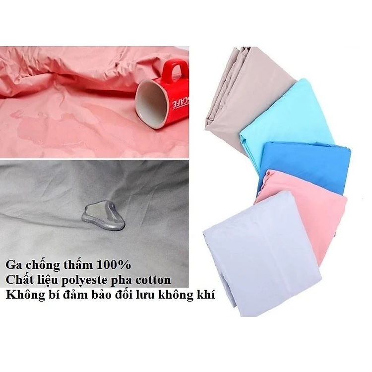 - Ga chống thấm được dệt bằng chất liệu vải lụa tổng hợp chống thấm 100%, không bí, đảm bảo đối lưu không khí và không gây sột soạt khi di chuyển trên giường.