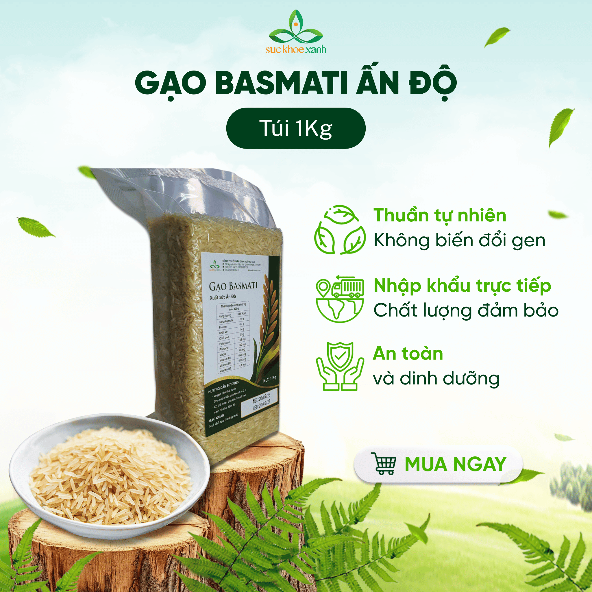 Thông số kỹ thuật Gạo Basmati India 1121 (Ấn Độ) Túi 1kg