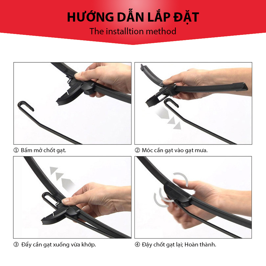 - Hướng dẫn sử dụng: Lắp đặt vào bộ phận gạt nước phía trước kính chắn gió.