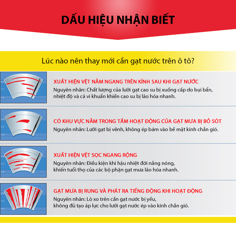 - Gạt sạch nước trên bề mặt kính, làm tăng tầm nhìn, nhất là khi sử dụng trong thời tiết mưa gió.