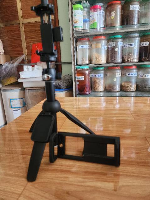 Có tích hợp sẵn Remote chụp hình từ xa cho điện thoại. Tương thích với các máy Android và IOS, dùng pin sạc tiện dùng với pin dự phòng, sạc điện thoại, khi sạc đầy có thể chụp 700-1000 tấm hình. Đầu kẹp điện thoại với thiết kế mới có thể gập lại, dạng xoay có thể gắn các máy kích thước từ 3.5 inch tới 6.5 inch.